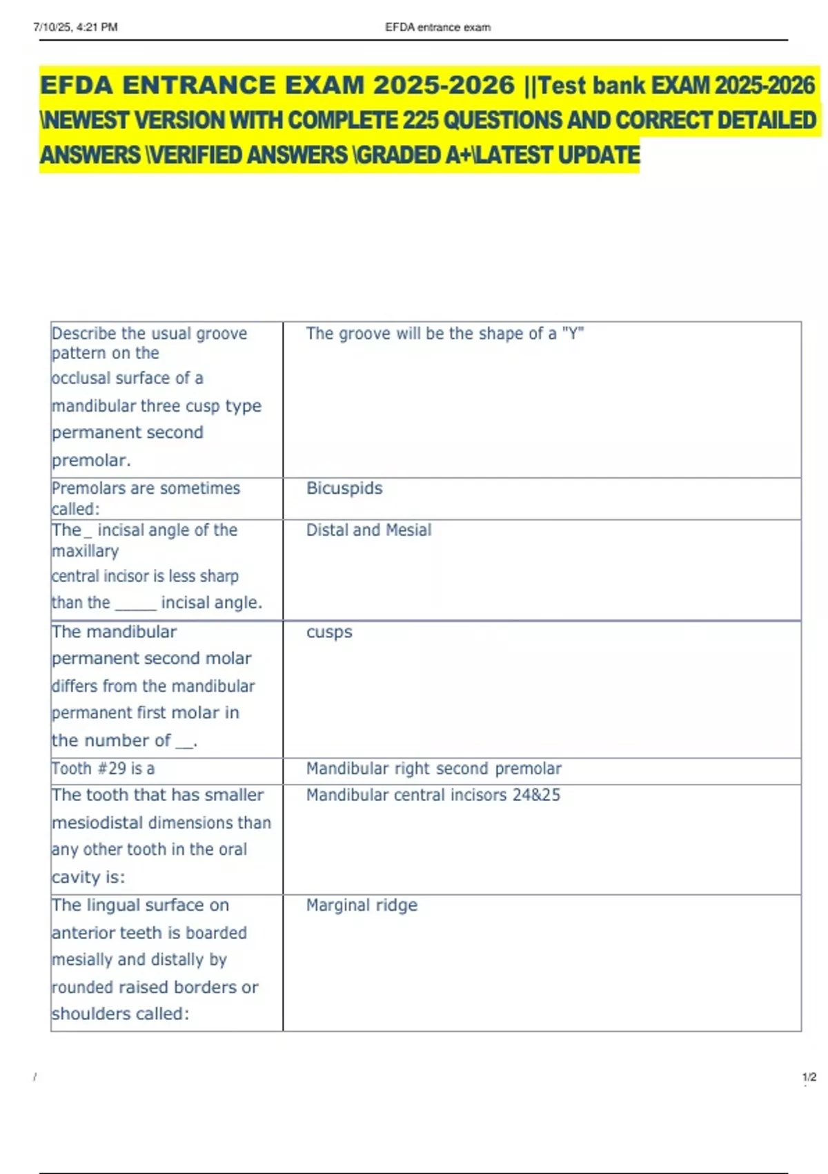 EFDA Board ACTUAL Exam Preparation Test Bank Questions with Correct Answers/ PA EFDA Certification Exam Prep Questions with Answers (Brand New!) EFDA Board ACTUAL Exam Preparation Test Bank Questions with Correct Answers/ PA EFDA Certification Exam Prep Questions with Answers (Brand New!) EFDA Board ACTUAL Exam Prepara