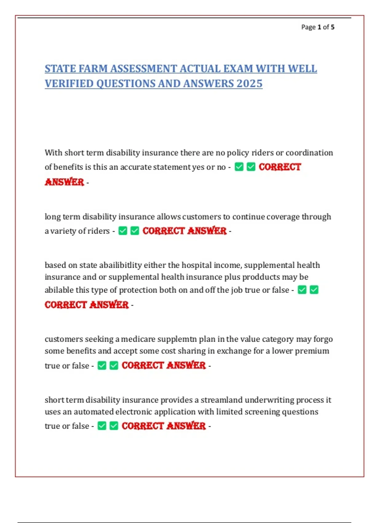 STATE FARM Exam Bundle [ Full Pack Solution] | Questions And Answers 100% Verified | Current Update !!!