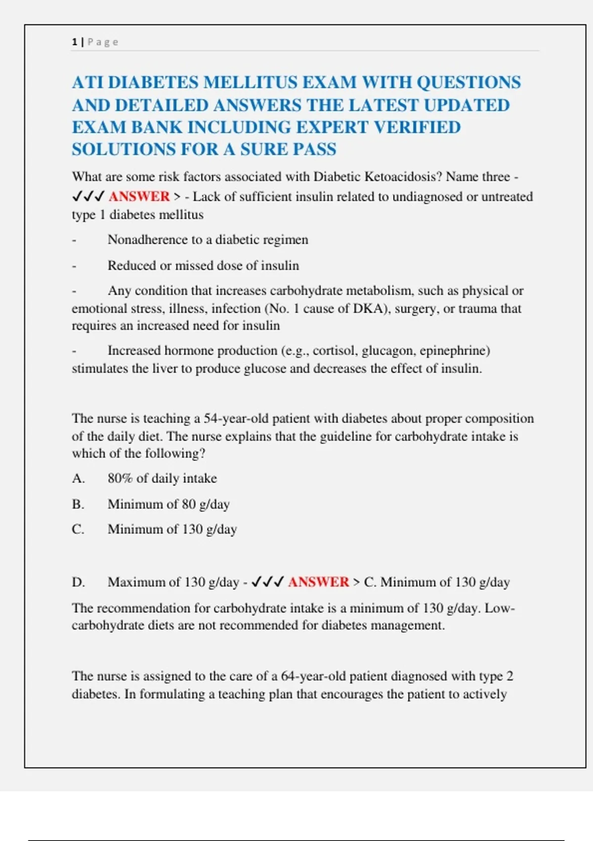 ATI DIABETES MELLITUS TEST EXAMS PACKAGE WITH QUESTIONS AND DETAILED ANSWERS THE LATEST UPDATED EXAM BANK INCLUDING EXPERT VERIFIED SOLUTIONS FOR A SURE PASS