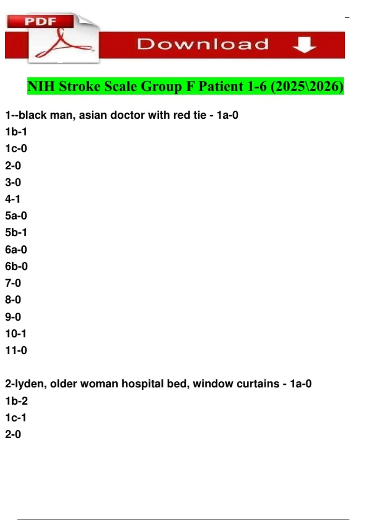 NIH Stroke Scale Group A Patient 1-6 ( update) 100% verified