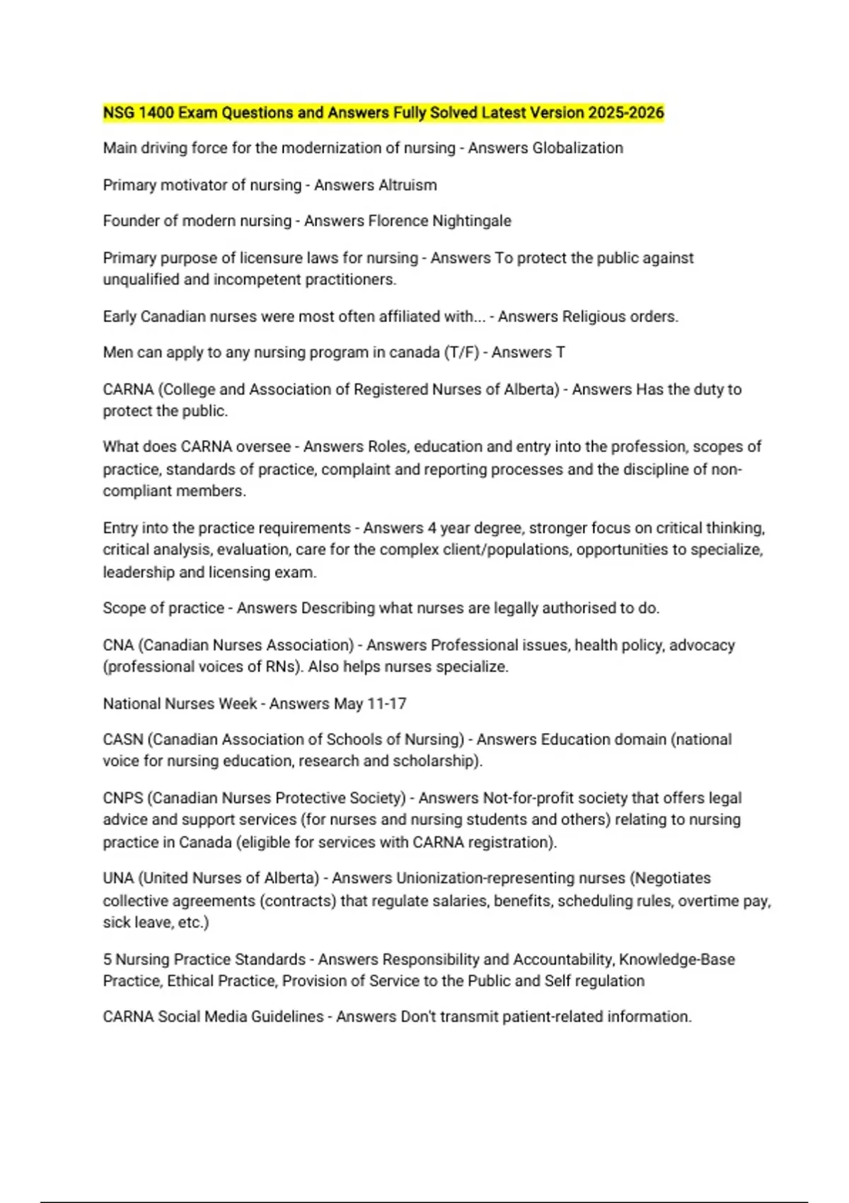 NSG 1400 Bundled Questions Answered Correctly Latest Update 2025/2026