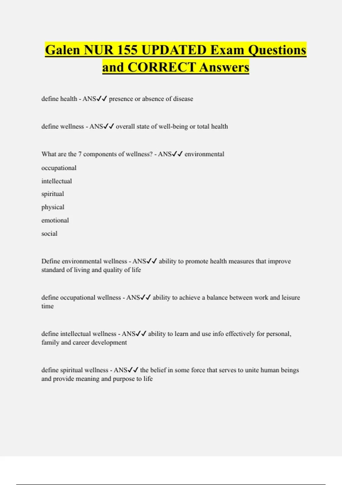 Nur 155 Bundled Exam Questions WITH CORRECT Answers