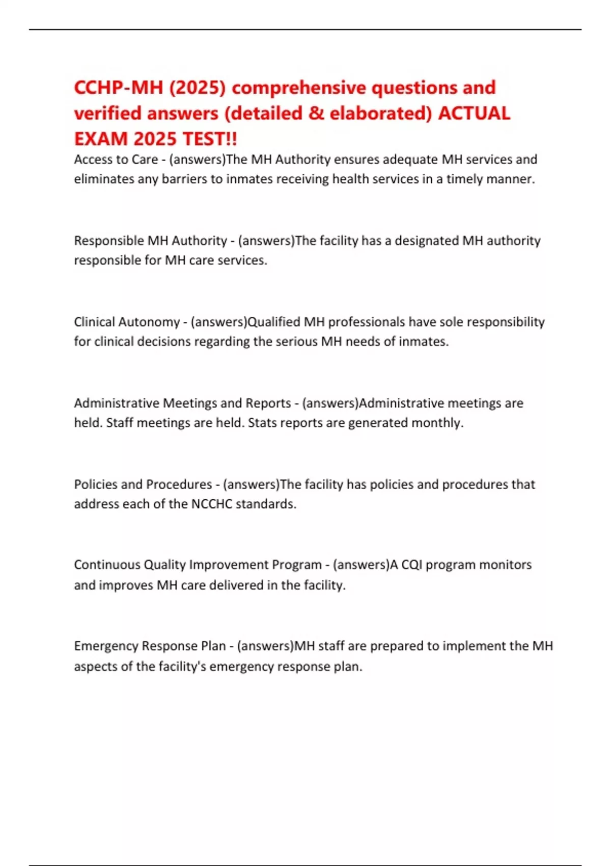 CCHP-MH (2025) comprehensive questions and verified answers (detailed & elaborated) ACTUAL EXAM 2025 TEST!!