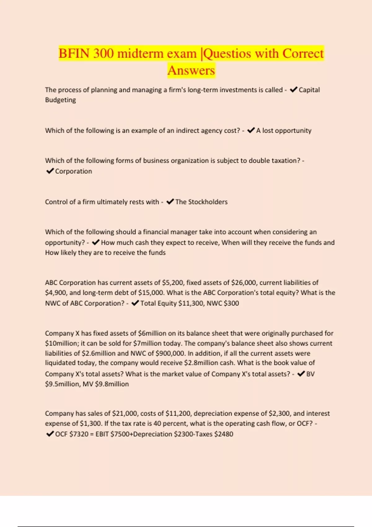 BFIN 300 bundled exams all with Questions and Correct Verified Answer