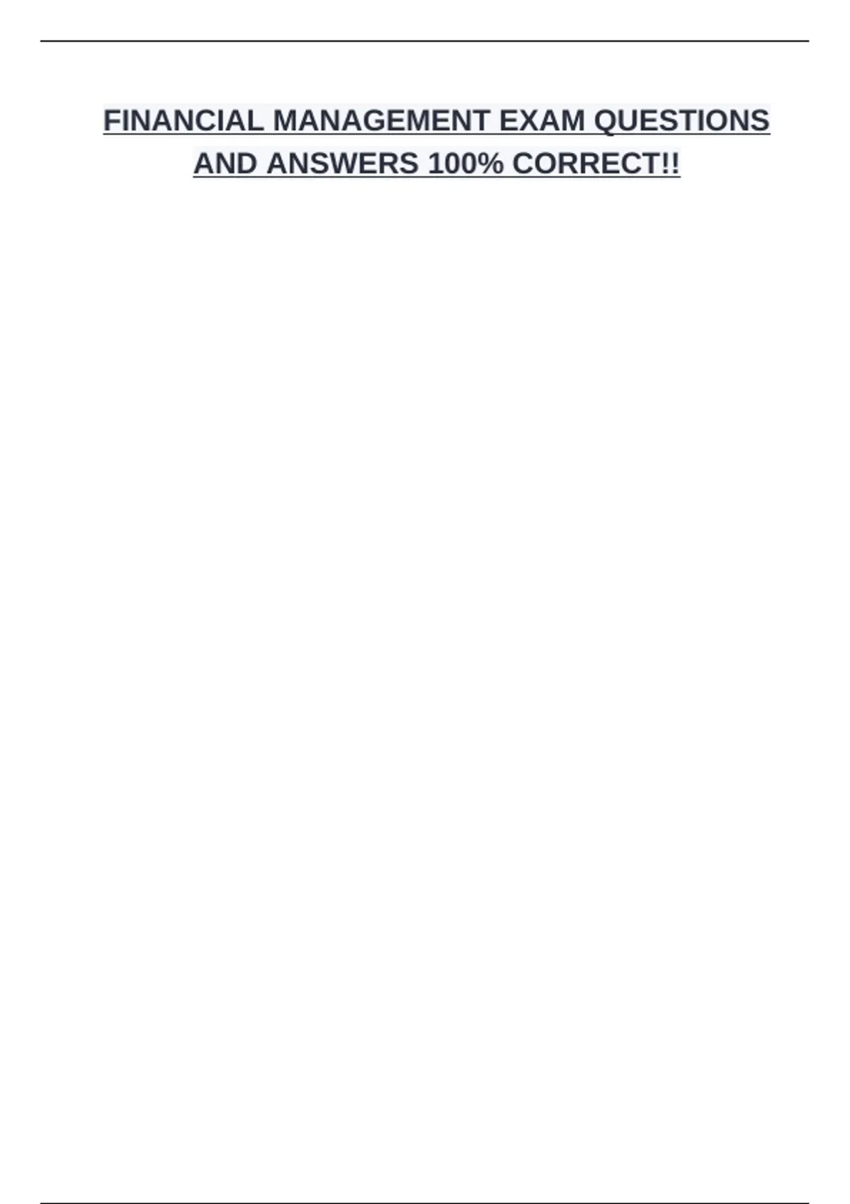FINANCIAL MANAGEMENT FINAL EXAM BUNDLE(COMPLETE PACKAGE DEAL) QUESTIONS AND ANSWERS 100% CORRECTFINANCIAL MANAGEMENT FINAL EXAM BUNDLE(COMPLETE PACKAGE DEAL) QUESTIONS AND ANSWERS 100% CORRECTFINANCIAL MANAGEMENT FINAL EXAM BUNDLE(COMPLETE PACKAGE DEAL) QUESTIONS AND ANSWERS 100% CORRECTVFINANCIAL MANAGEMENT FINAL EXAM BUNDLE(COMPLETE PACKAGE DEAL)