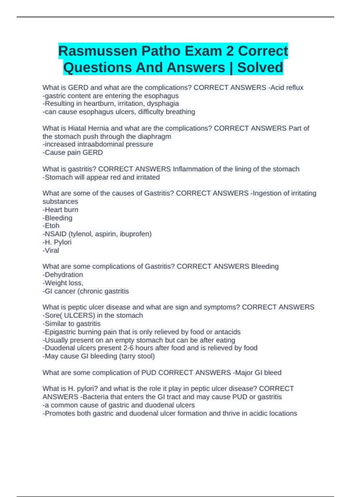 NUR 2063 Pathophysiology Exam 1 Questions And Answers For A+ Score!!{2025|2026} Updated Pathophysiology Exam 2 Rasmussen University Winter 2025| 2026 With Correct Solutions NUR 2063 / NUR2063: Essentials of Pathophysiology Exam 2 (Latest 2025 /2026) Rasmussen Solved Correctly To Score A+