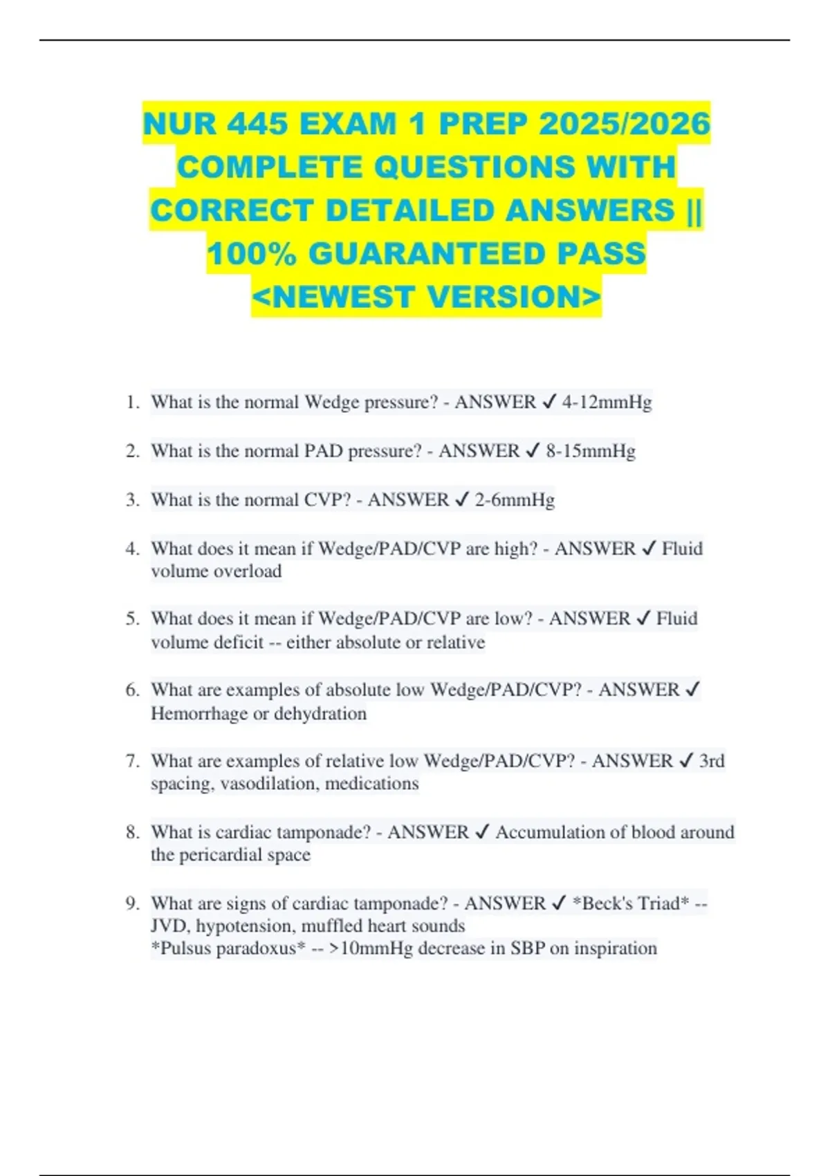BUNDLE FOR NUR 445 FINAL EXAM PREP 2025/2026 COMPLETE QUESTIONS WITH CORRECT DETAILED ANSWERS || 100% GUARANTEED PASS NEWEST VERSION