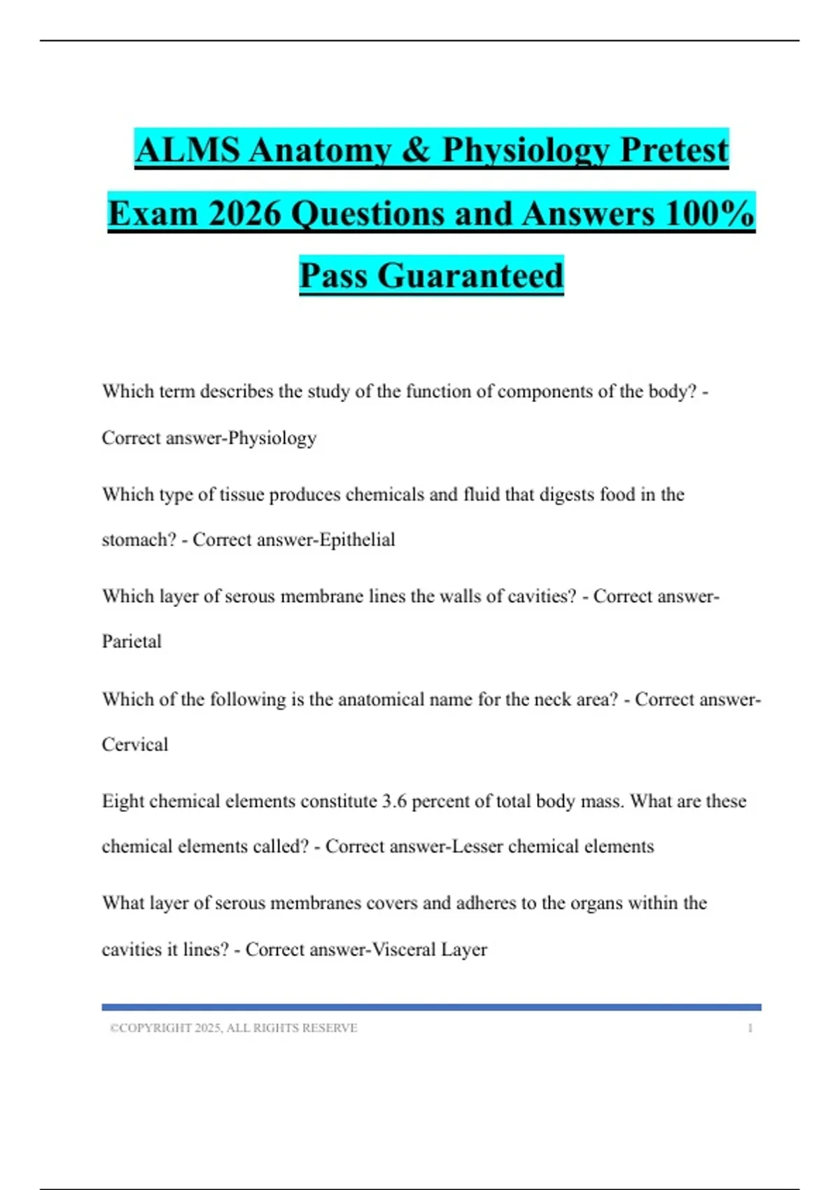Alms anatomy en physiology Bundled Tests 2026 Questions and Answers