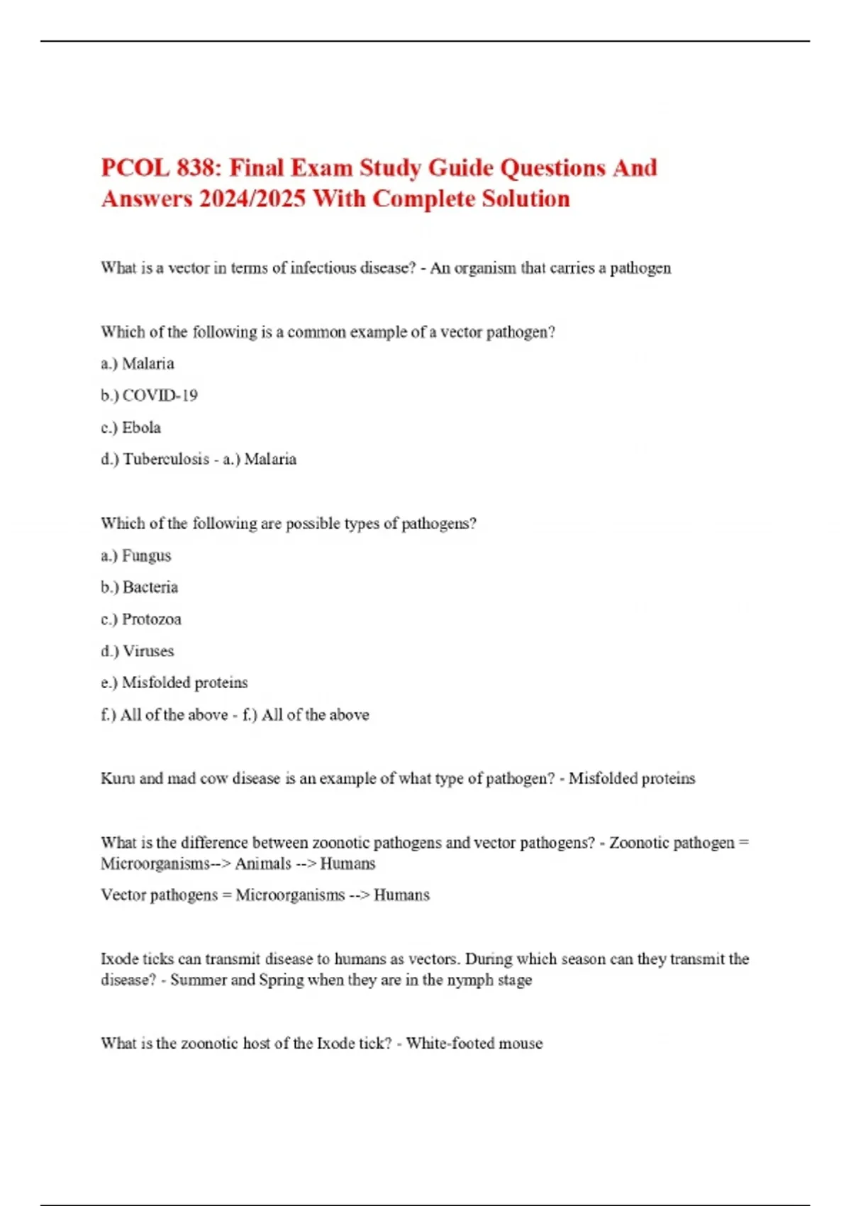 PCOL838 Exams Bundle With Verified Questions And Answers | Latest Updated Solutions