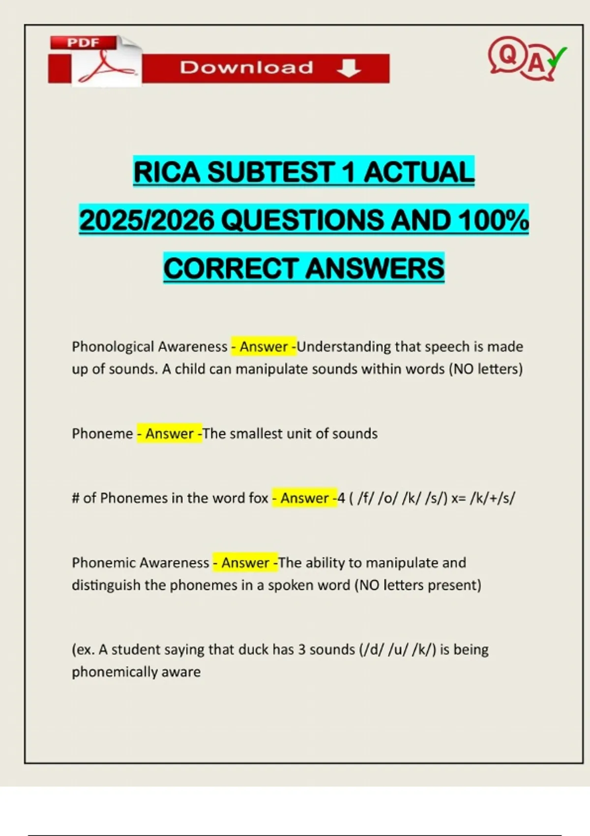 EXAMS PACK::: RICA SUBTEST 1,2,3 ACTUAL 2025/2026 Q&A 100% PASS