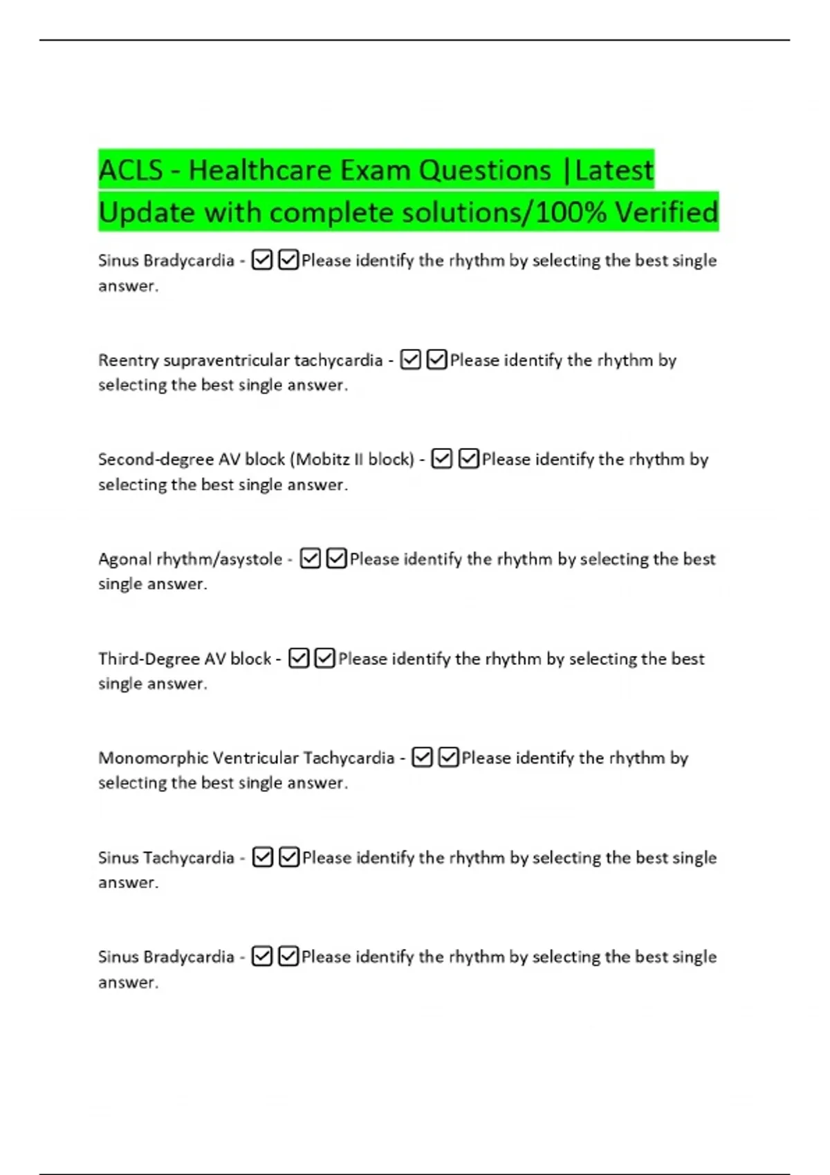 ACLS - Healthcare Exam Questions |Latest Update with complete solutions/100% Verified