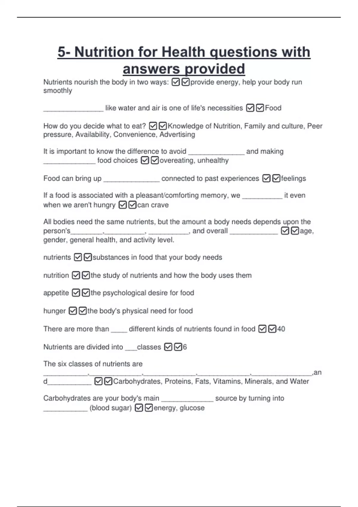 Nutrition for Health questions with answers
