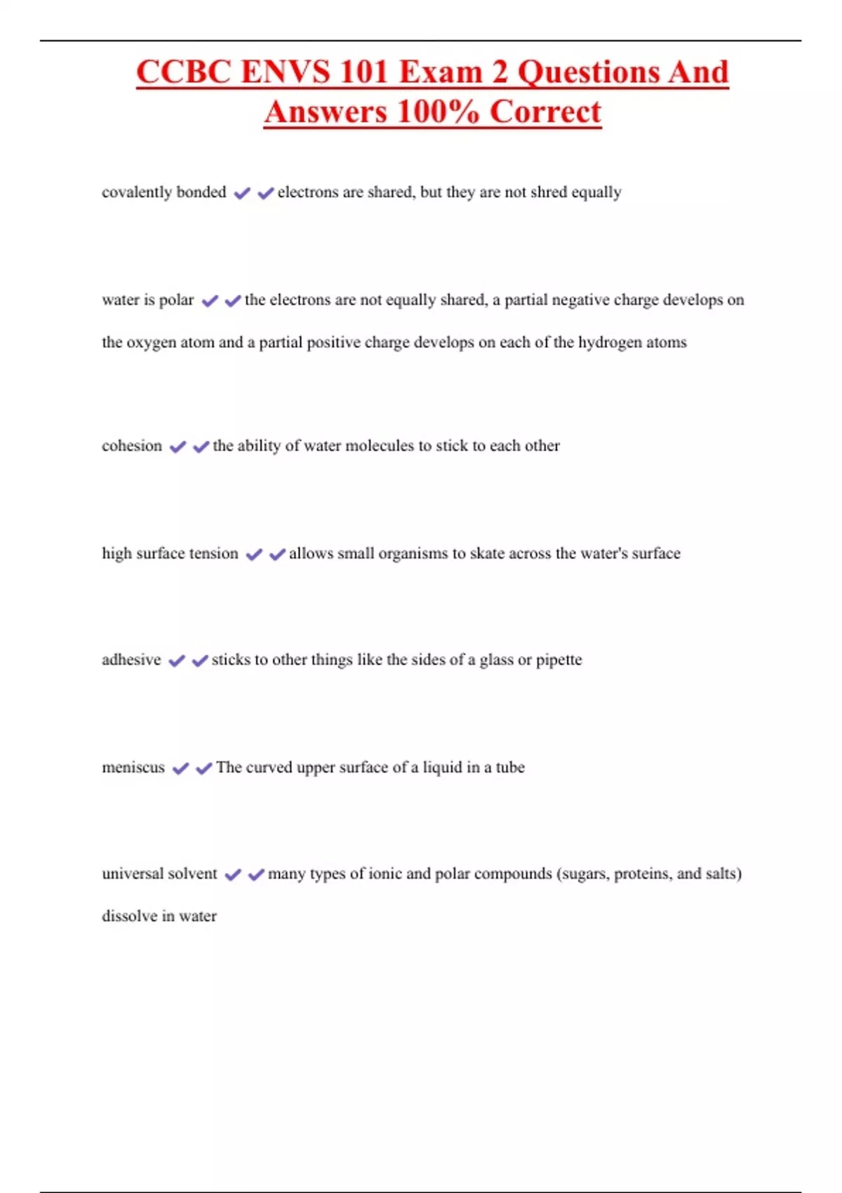 ENVS BUNDLED EXAMS WITH COMPLETE SOLUTIONS