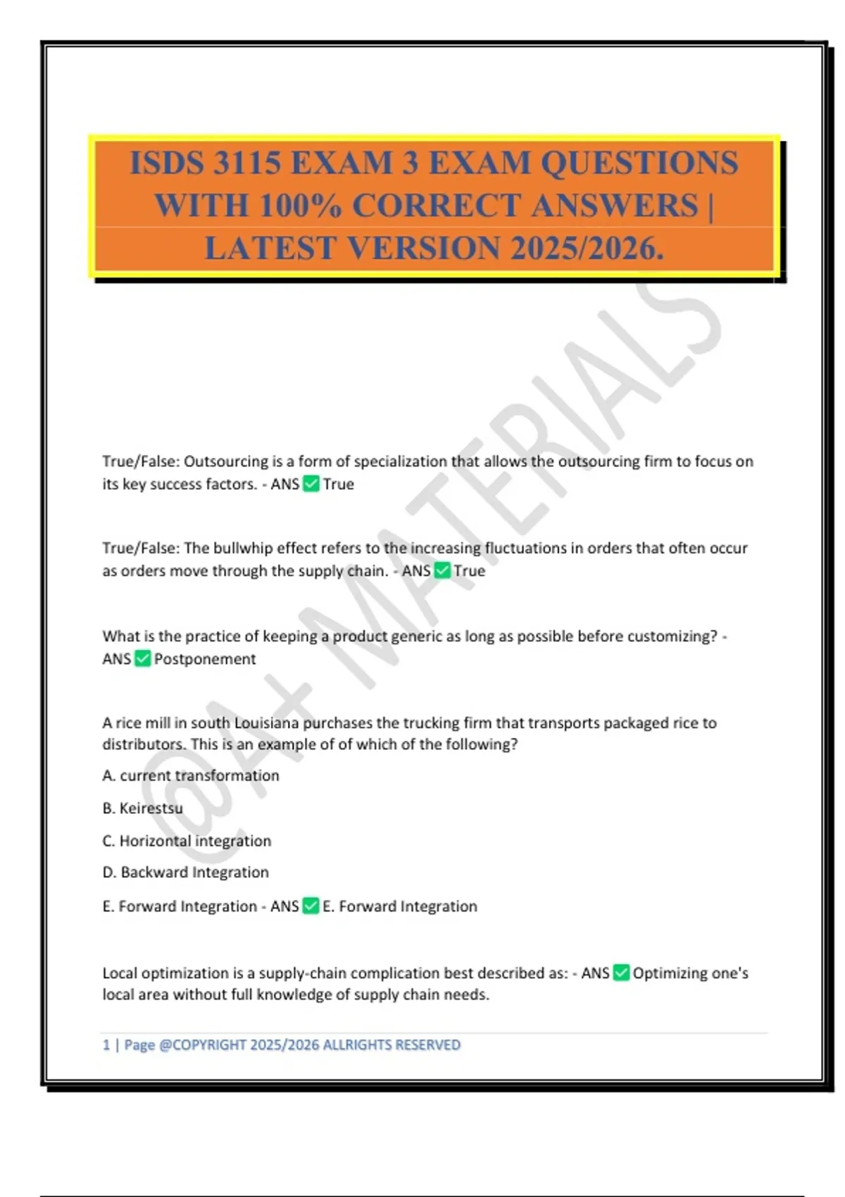 ISDS 3115 EXAM 3 EXAM QUESTIONS WITH 100% CORRECT ANSWERS | LATEST VERSION 2025/2026.