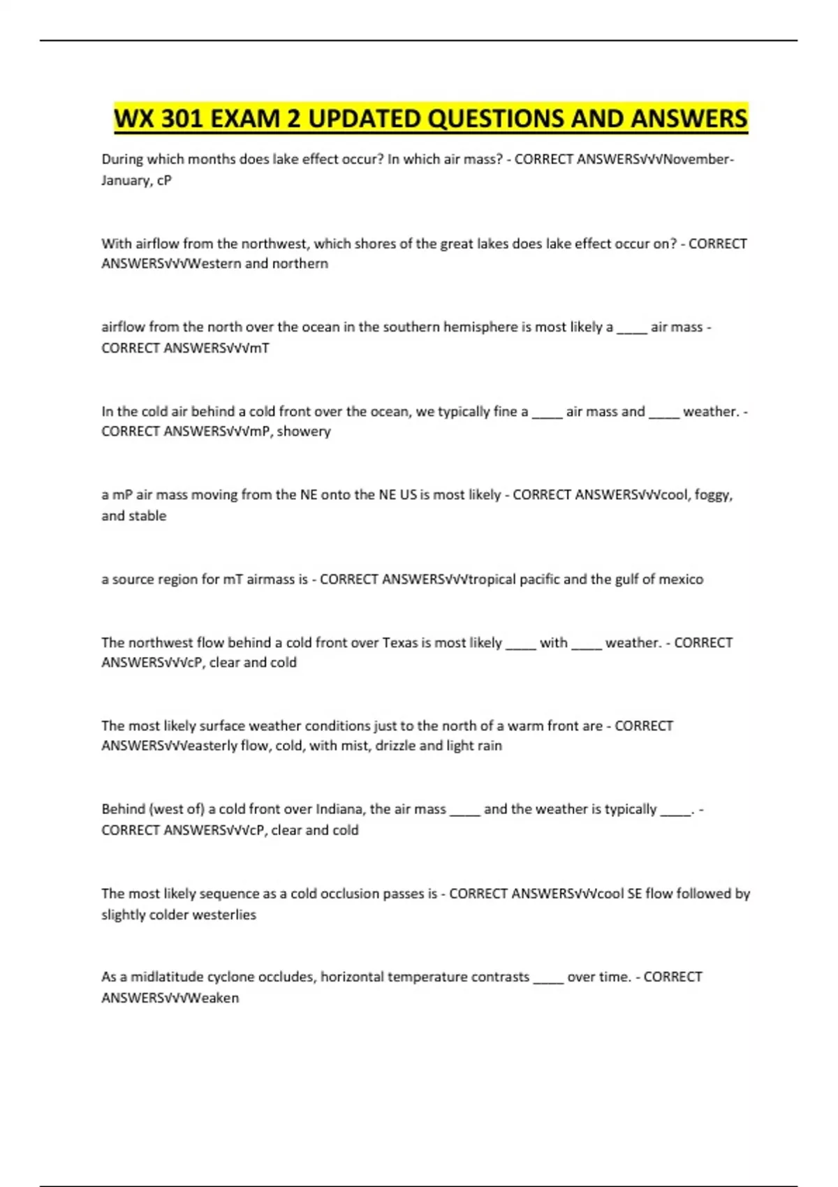 WX 301 EXAM 2 UPDATED QUESTIONS AND ANSWERS