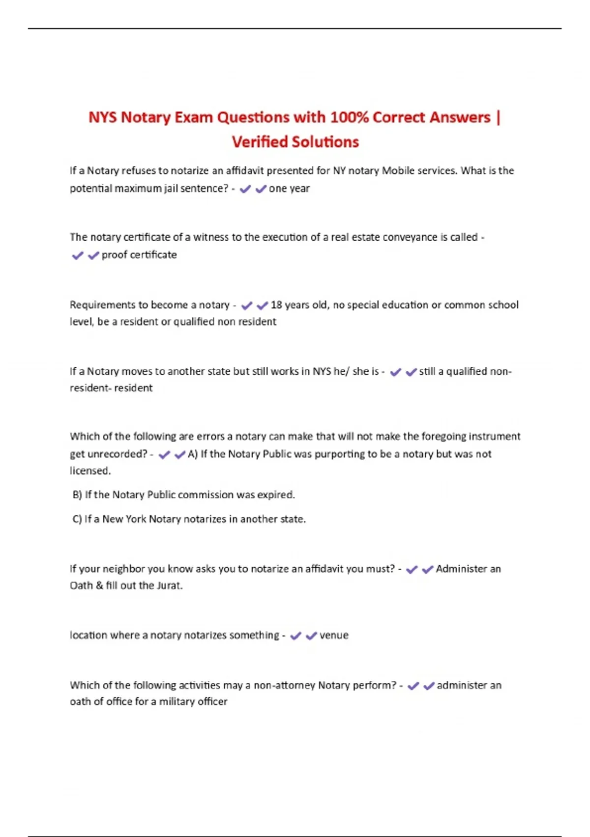 BUNDLE FOR NYS Notary EXAMS Questions with 100% Correct Answers | Verified Solutions