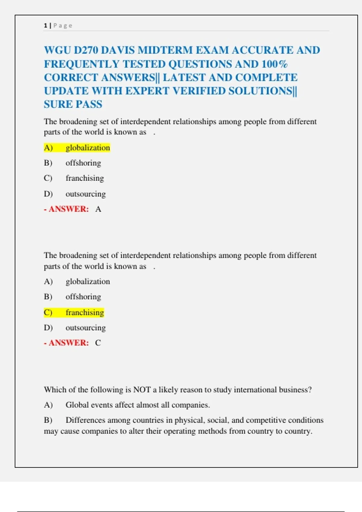 WGU D270 EXAMS PACKAGE ACCURATE AND FREQUENTLY TESTED QUESTIONS AND 100% CORRECT ANSWERS|| LATEST AND COMPLETE UPDATE WITH EXPERT VERIFIED SOLUTIONS|| SURE PASS