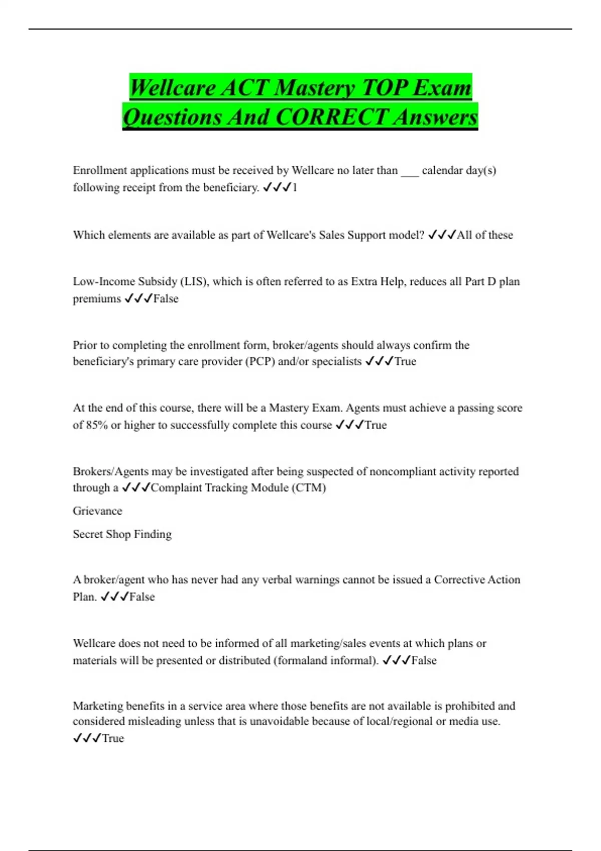 Wellcare Bundled Exam Questions WITH CORRECT Answers