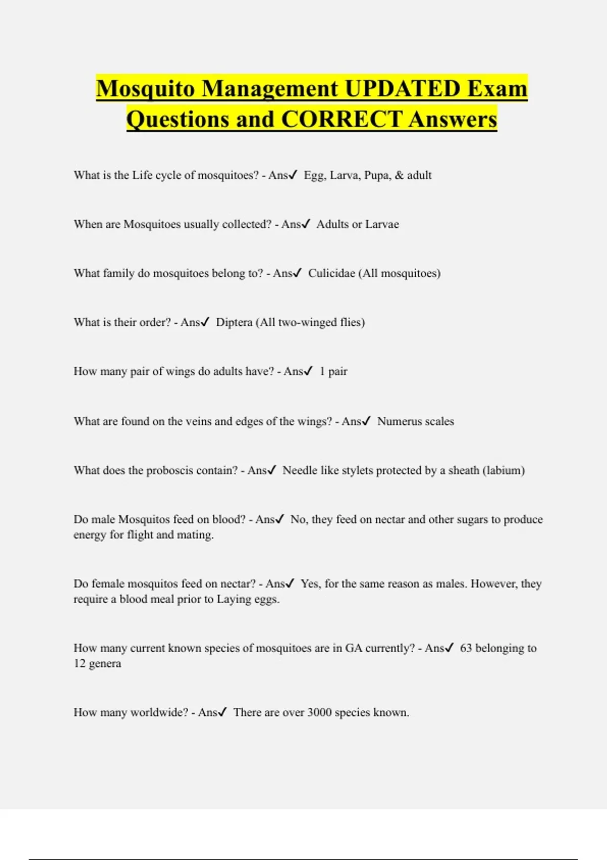 Mosquito Bundled Exam Questions WITH CORRECT Answers