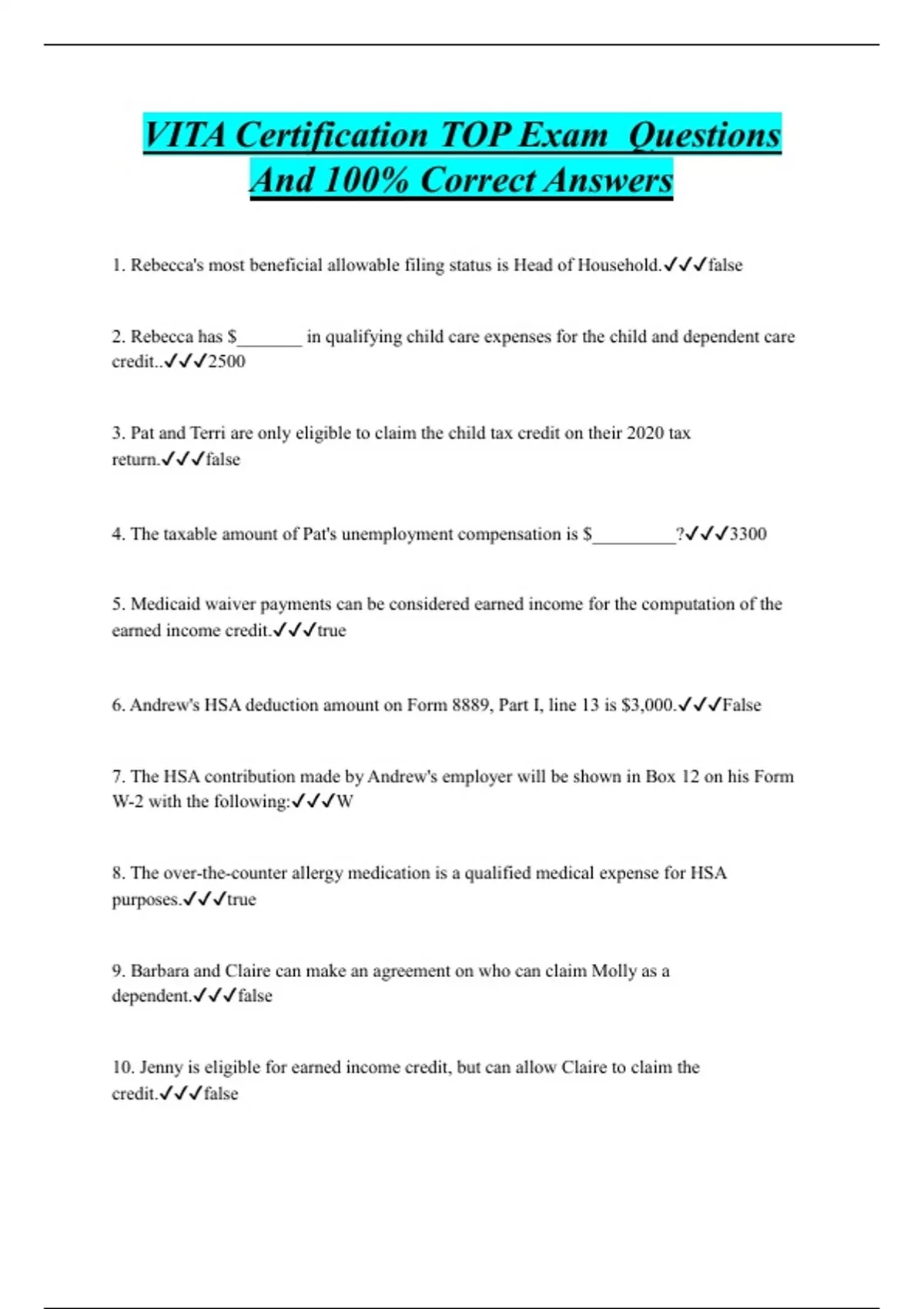 VITA Bundled Exam Questions WITH CORRECT Answers