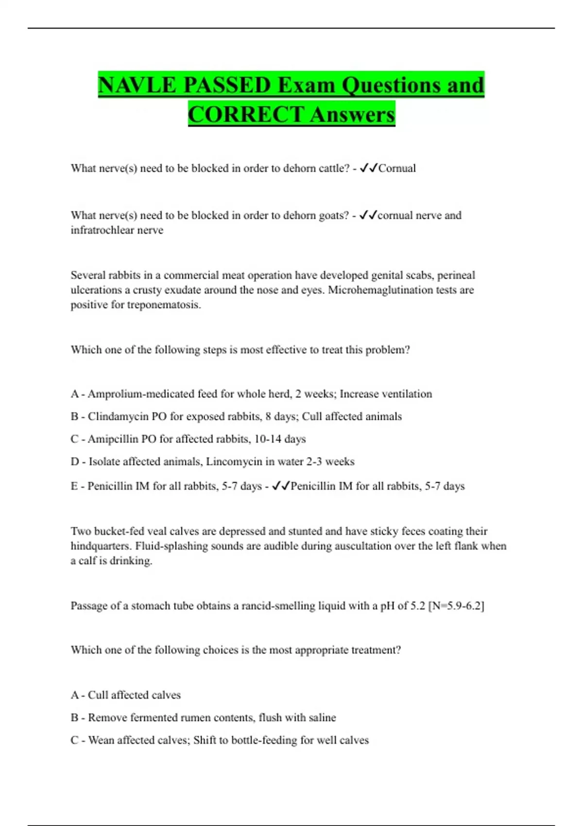 NAVLE Bundled Exam Questions WITH CORRECT Answers
