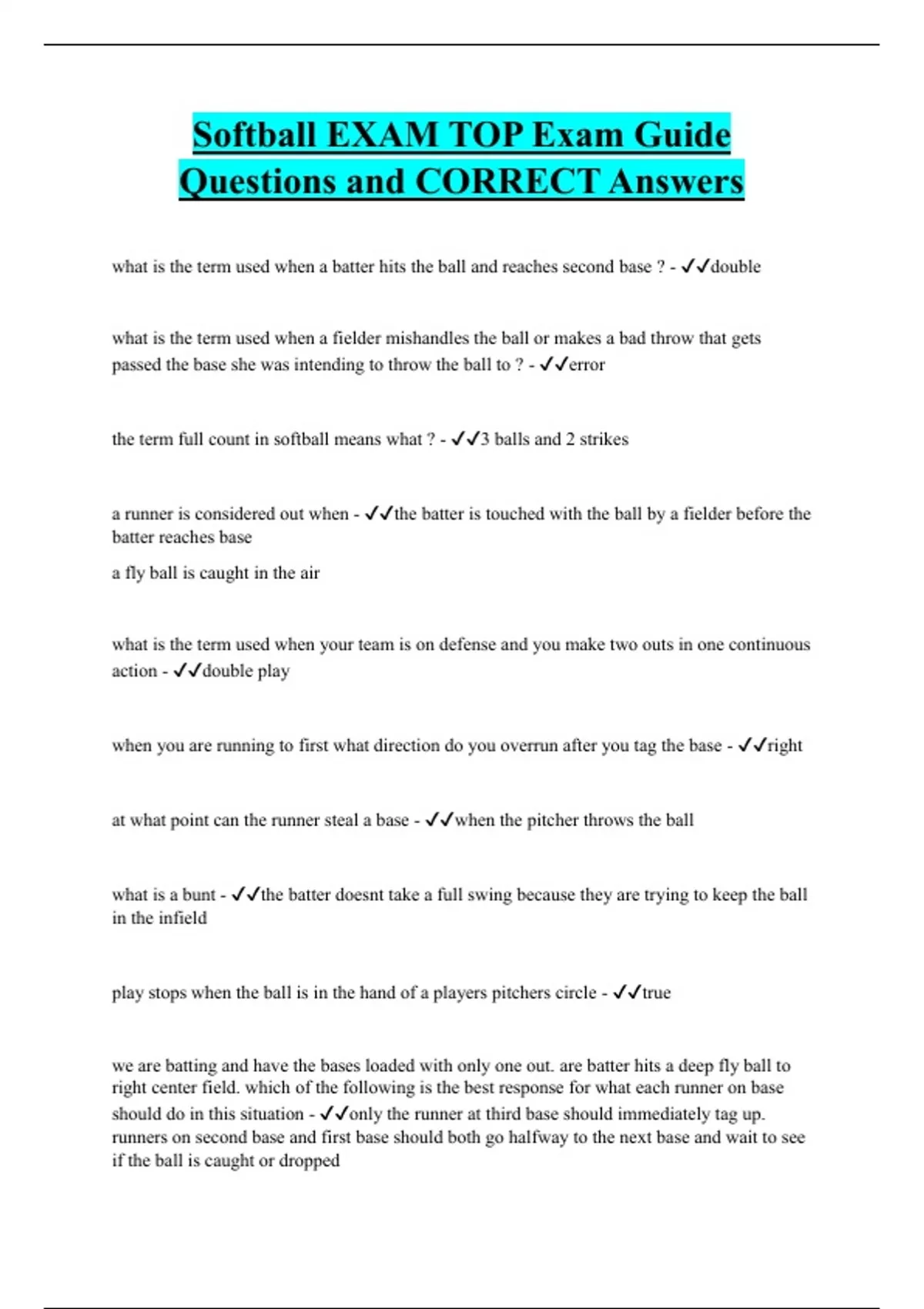 Softball Bundled Exam Questions WITH CORRECT Answers