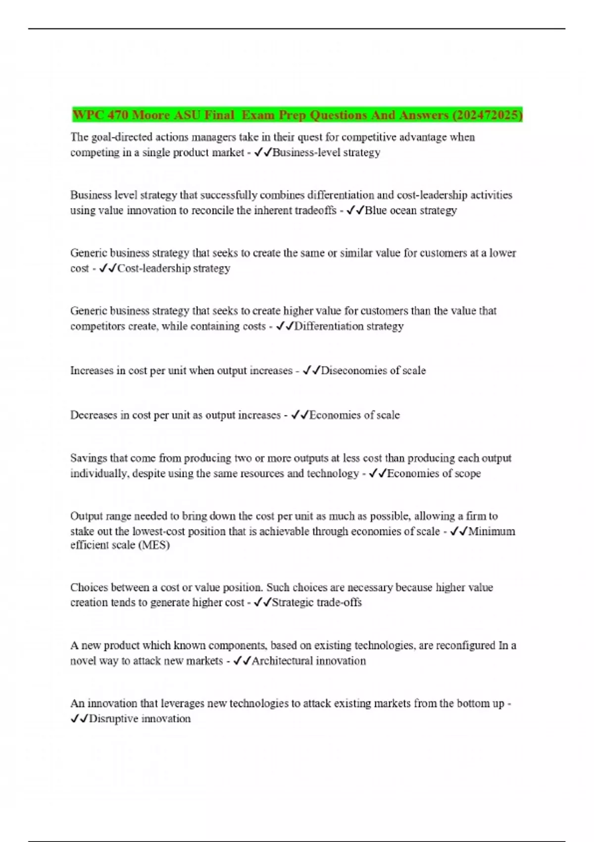 WPC 470 Moore ASU Final Exam Prep Questions And Answers ()