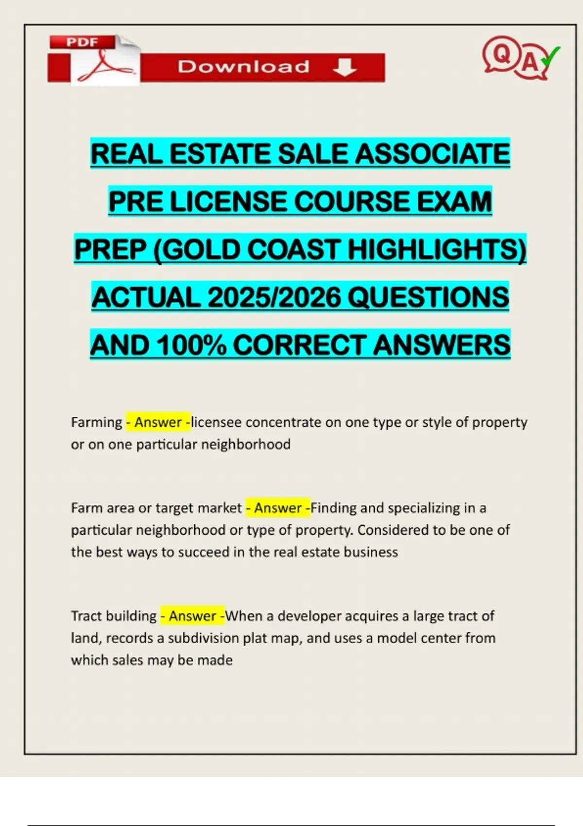 PACKAGE DEAL::: REAL ESTATE GOLD COAST EXAMS ACTUAL 2025/2026