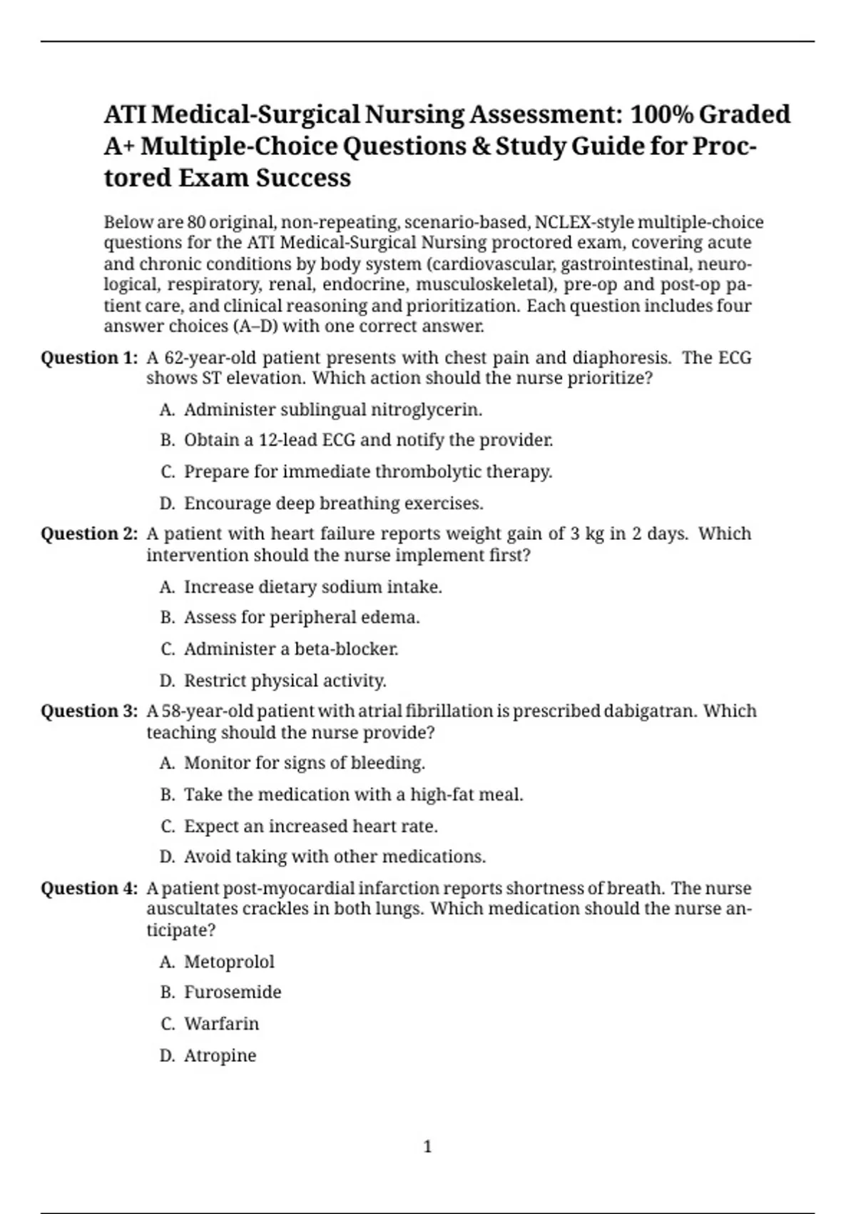ATI Med Surg Proctored Exam Collection – Real Exam-Style Questions and 100% Correct Verified Answers