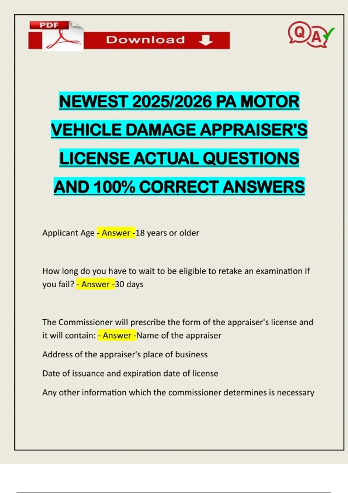 PACKAGE DEAL::: PA MOTOR VEHICLE (AUTO) DAMAGE APPRAISERS LICENSE 2025/2026
