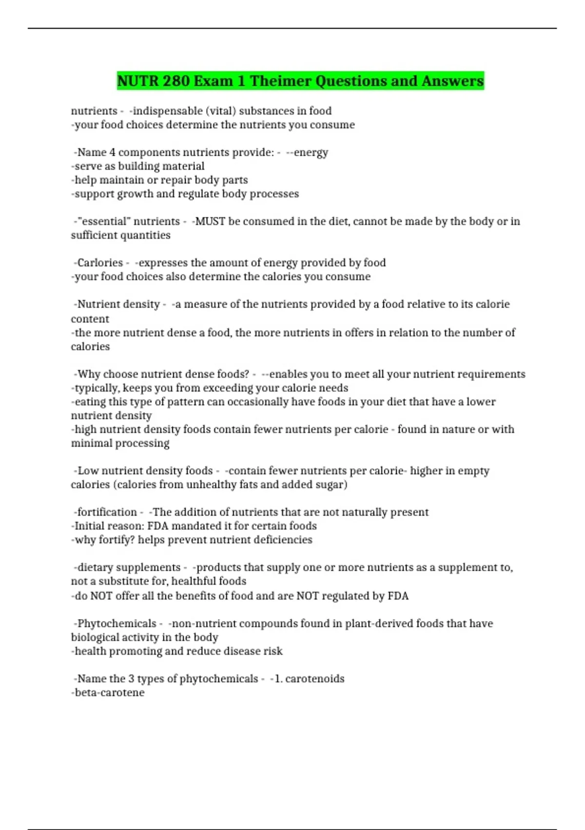 NUTR 280 Exam 1 Theimer Questions and Answers