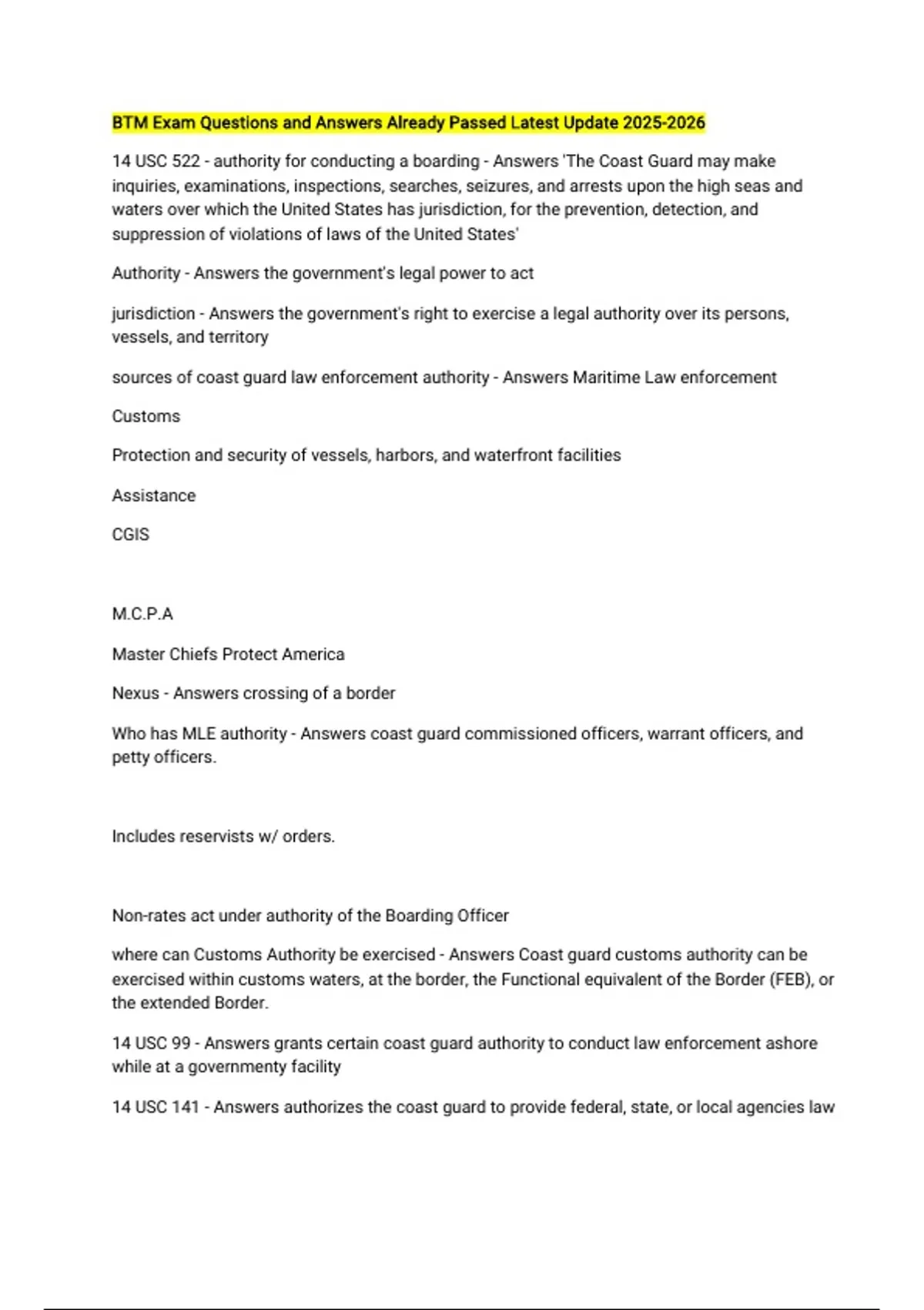 BTM Bundled Exams Questions Answered Correctly Latest Update 2025/2026