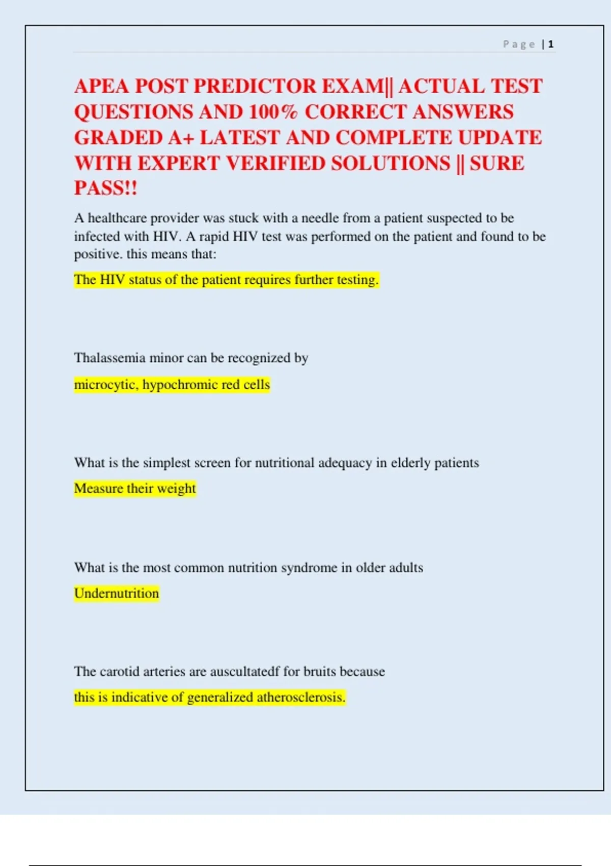 APEA PRE-PREDICTOR AND POST PREDICTOR EXAMS || ACTUAL EXAM ALL QUESTION AND 100% CORRECT ANSWERS ALREADY GRADED A || LATEST AND FULL COVERED VERSION 2025 WITH VERIFIED SOLUTIONS|| ASSURED PASS!!!