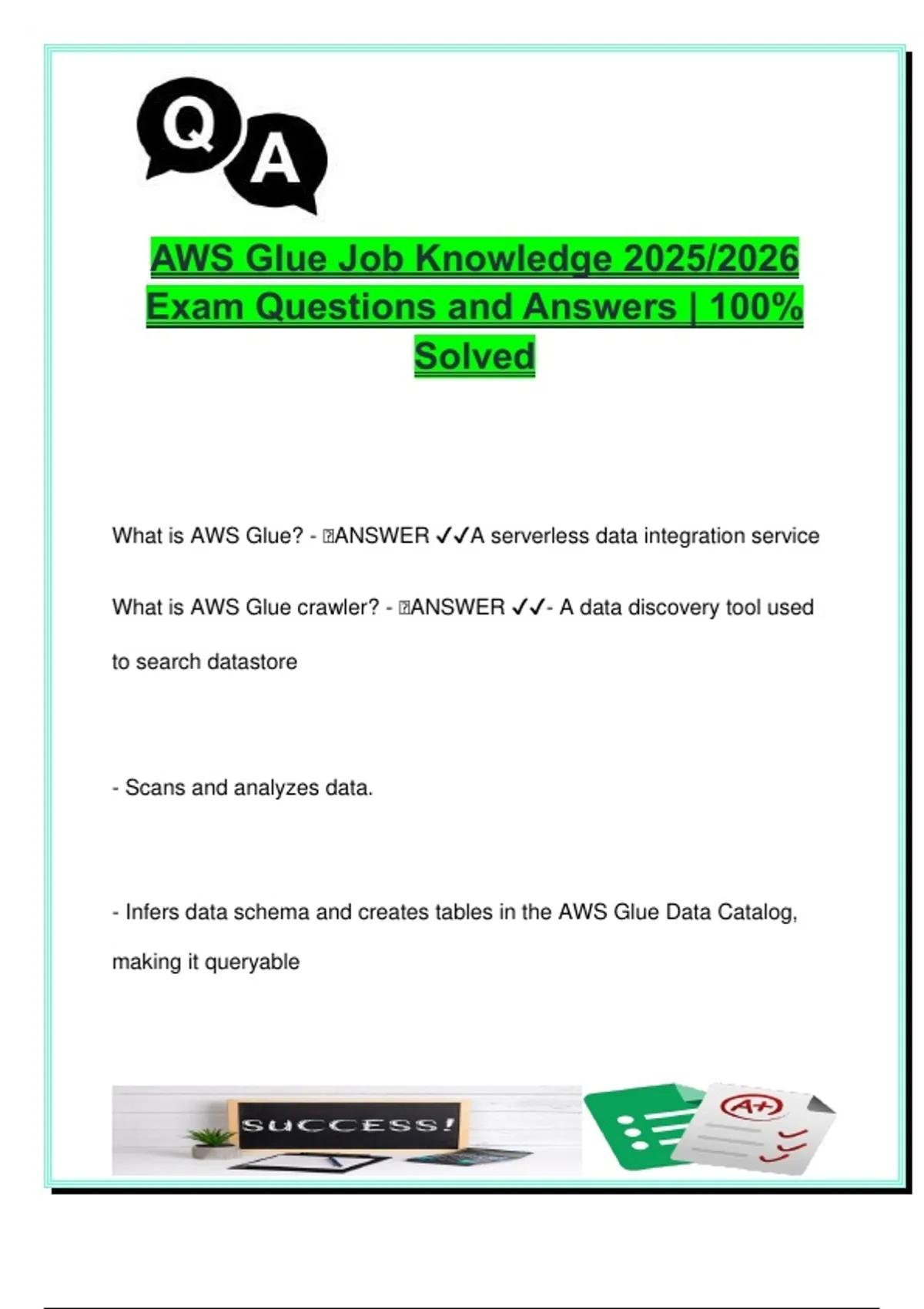 AWS GLUE EXAM COMPLETE PACKAGE DEAL