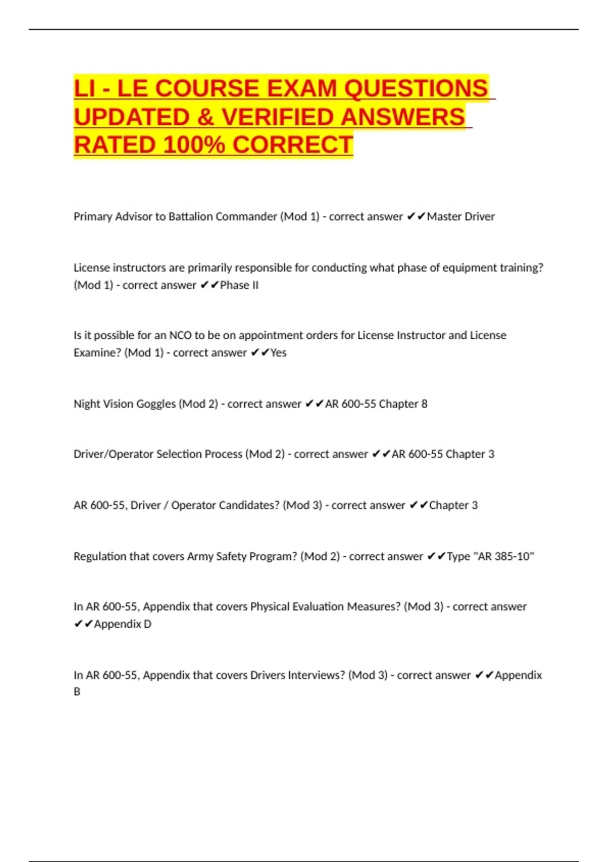 package deal for LI/ LE EXAM (LATEST UPDATE)