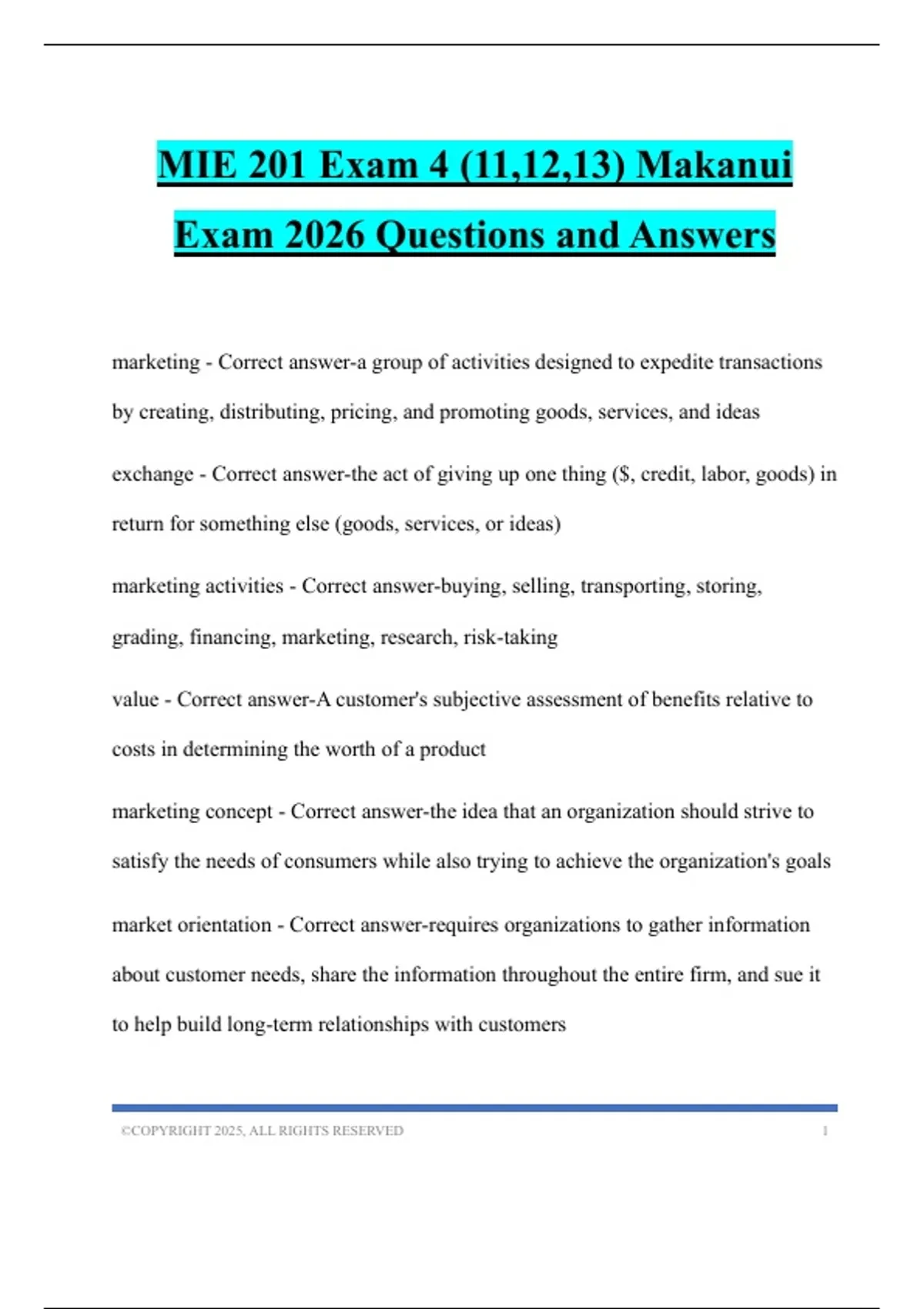 MIE 201 Bundled Tests 2026 Questions and Answers