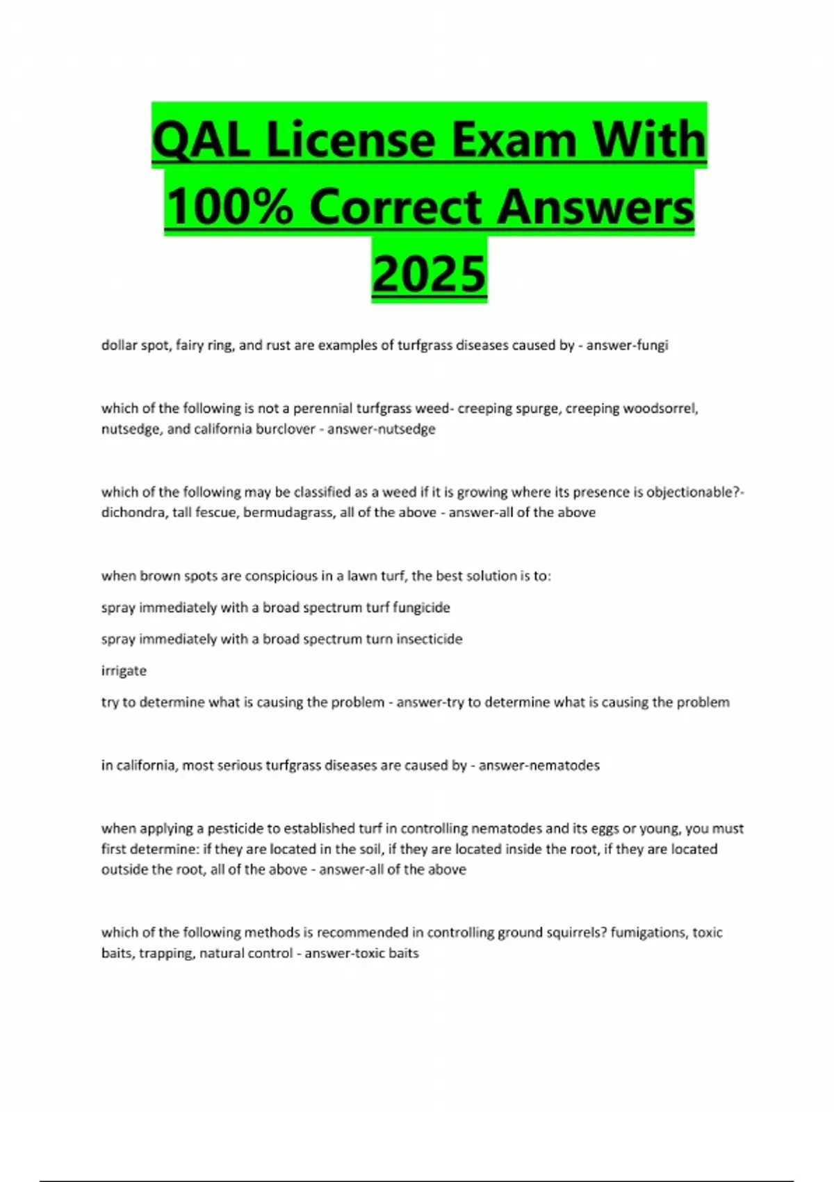 Package deal for QAL California Landscape Management & Pest Control Exam Questions and Answers | verified | updated | 2025/2026