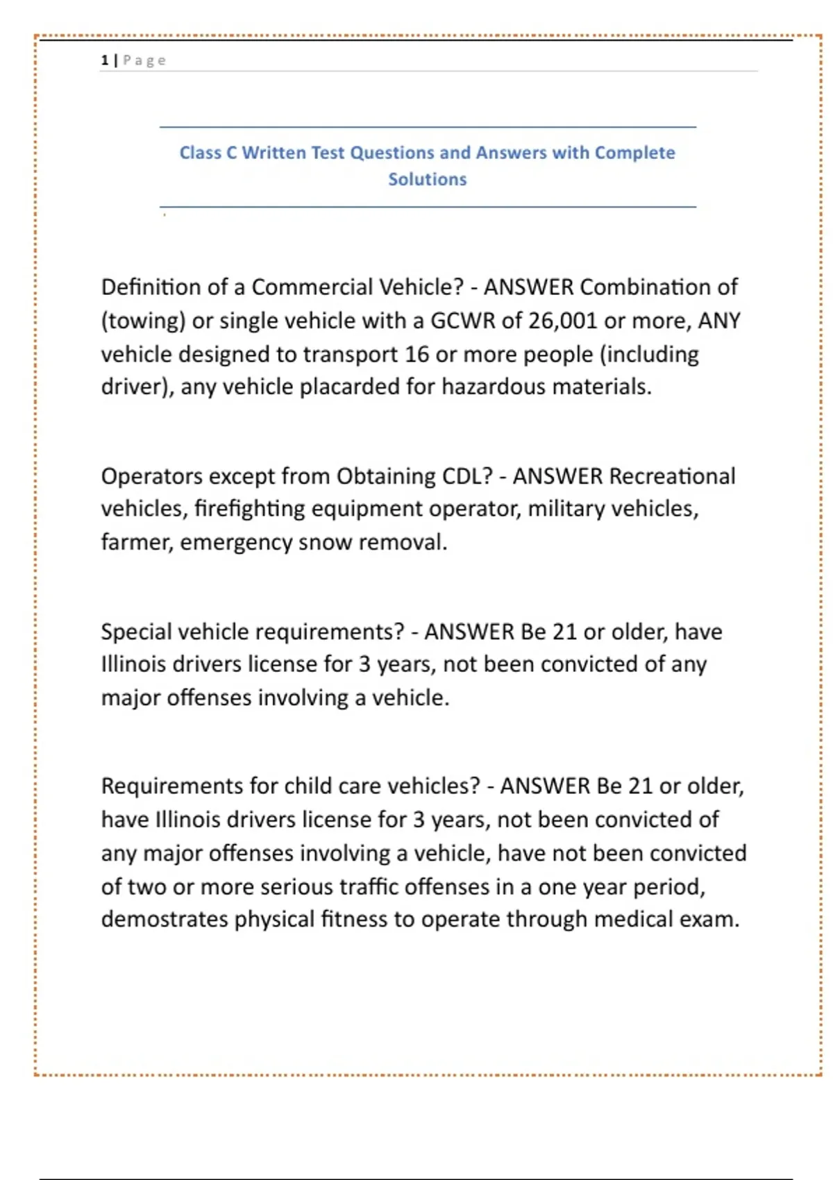 Illinois CDL |QUESTIONS & ANSWERS| already graded A+ (COMPLETE BUNDLE) UPDATED!!!