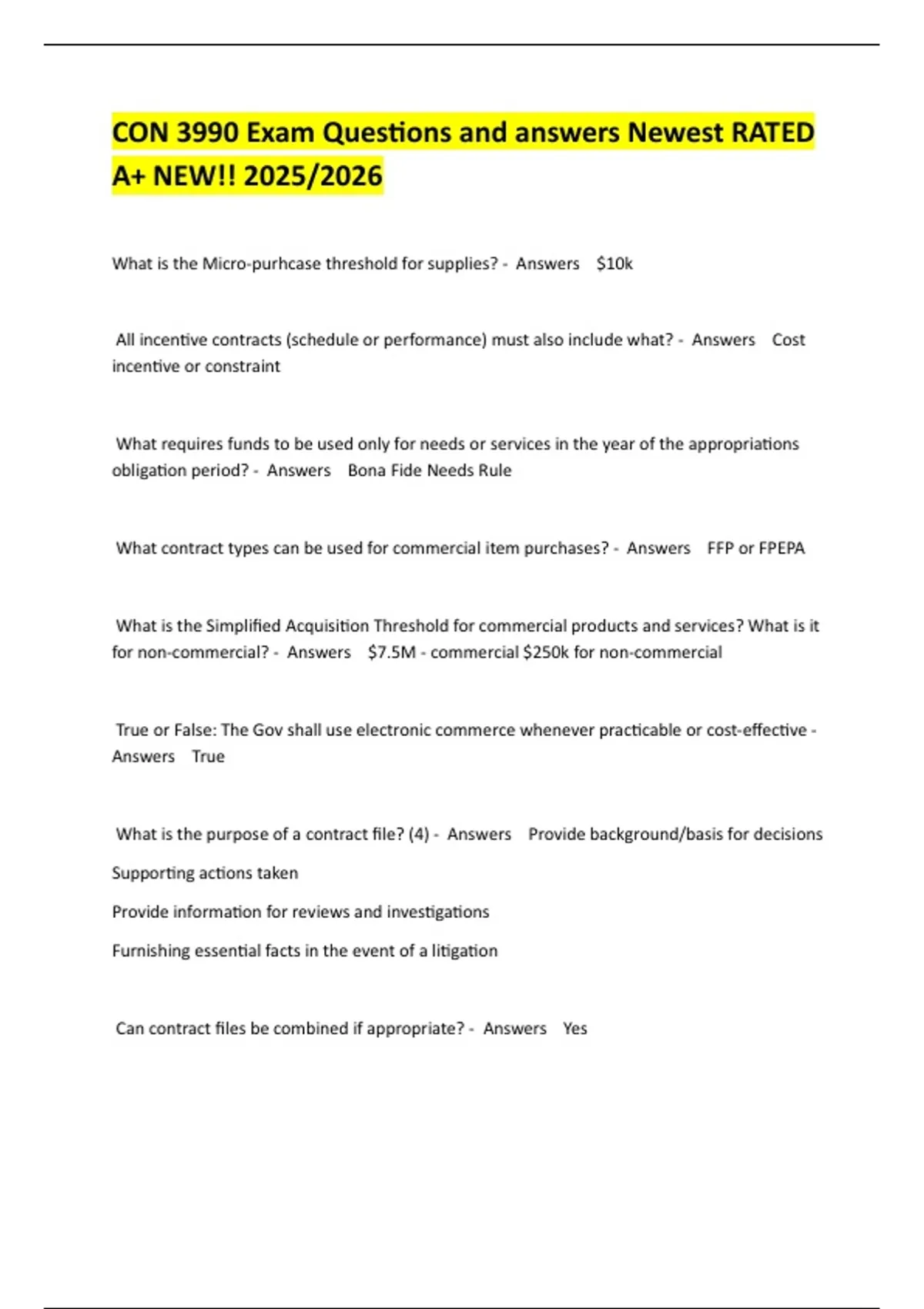 xam (elaborations) CON 3990 Contracting Certification Quiz 1 of 4/ CON 3990V - UCF Sections With complete solution New!! 2 Exam (elaborations) CON 3990 Exam FAR Parts With complete soluon 100% GUARANTEED SUCCESS NEW!! 2025/2026 3 Exam (elaborations) Contract Specialist Pracce Exam Quesons CON 3990 Quesons and answers Newest RATED A+ NEW!! 4