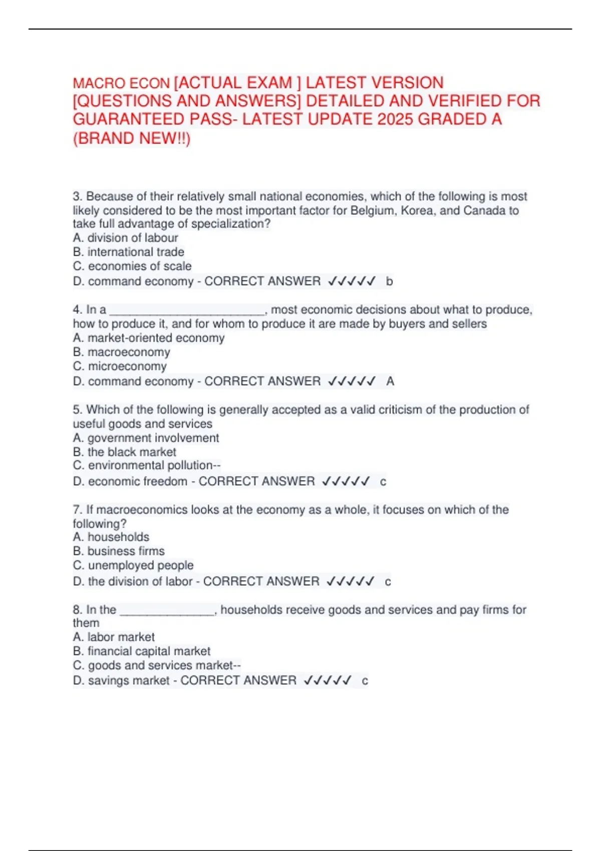 1 Exam (elaborations) MACRO ECON -ACTUAL EXAM - LATEST VERSION -QUESTIONS AND ANSWER 2 Exam (elaborations) Macro Econ- Taylor Econ -ACTUAL EXAM - LATEST VERSION -QUESTIONS AND ANSWERS- 3 Exam (elaborations) Macro Econ- Taylor Econ -ACTUAL EXAM - LATEST VERSION -QUESTIONS AND ANSWERS-