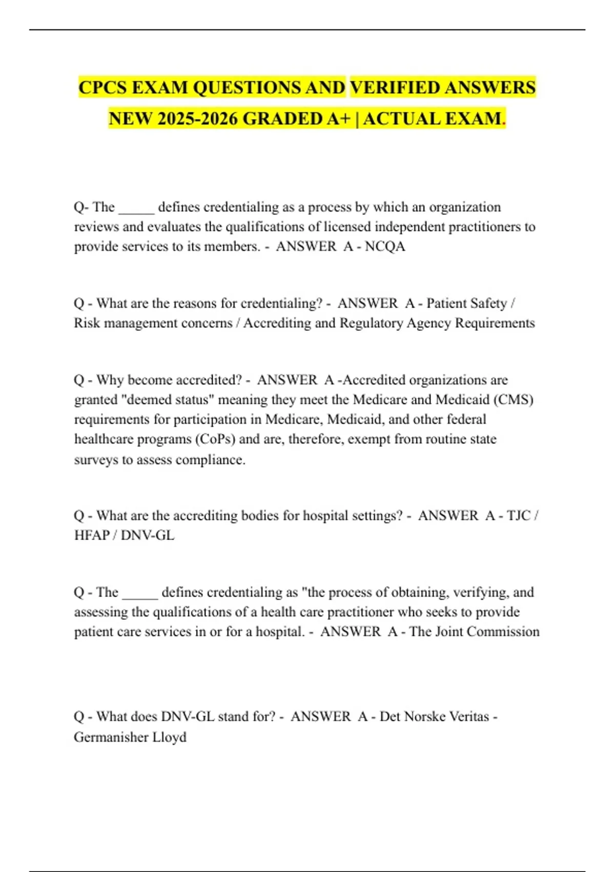 CPCS EXAM QUESTIONS AND VERIFIED ANSWERS NEW GRADED A+ & CPCS – NAMSS EXAM QUESTIONS AND VERIFIED ANSWERS 2025/2026 | ACTUAL EXAM