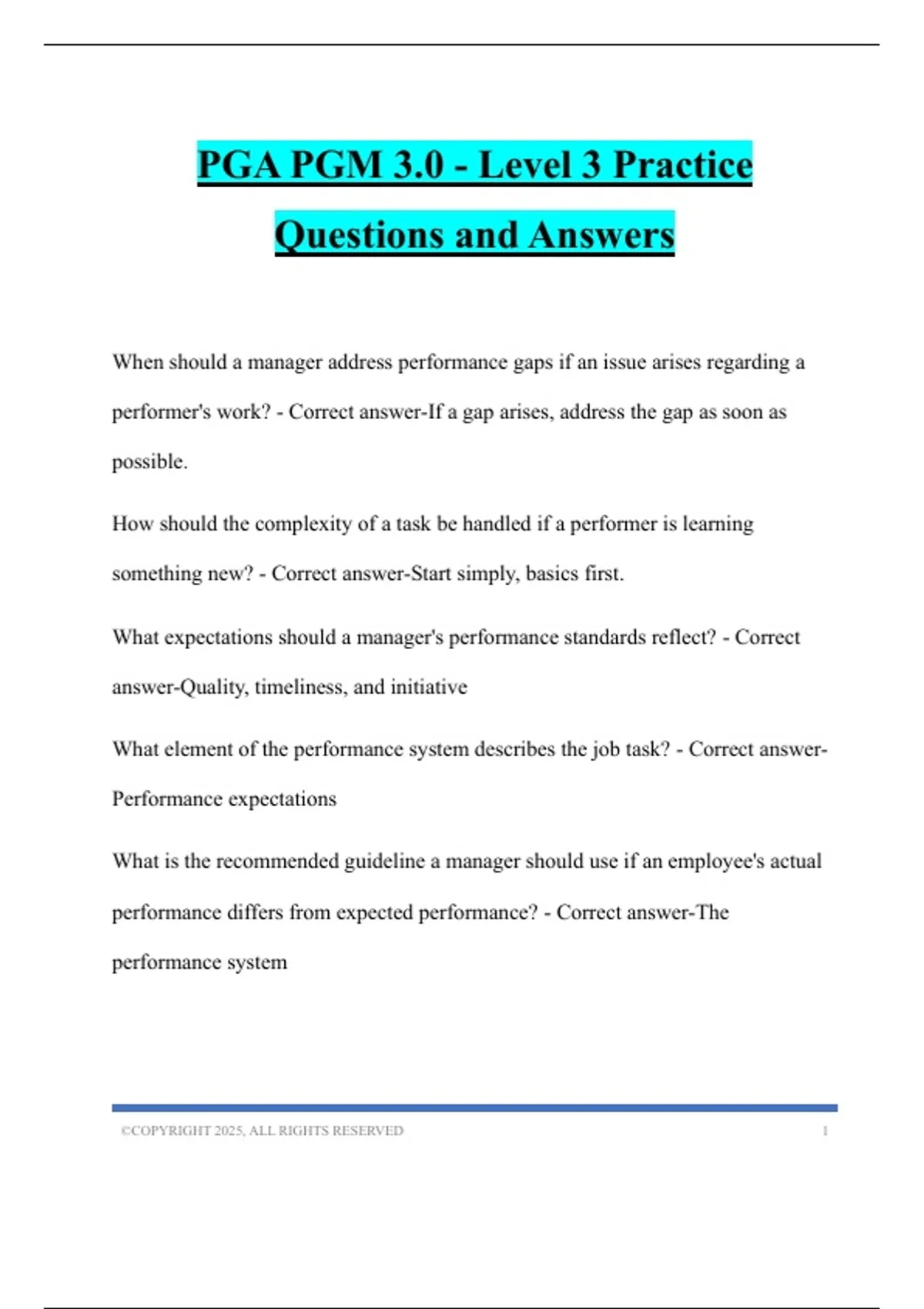 PGA PGM 3.0 - Level 3 Practice Questions and Answers