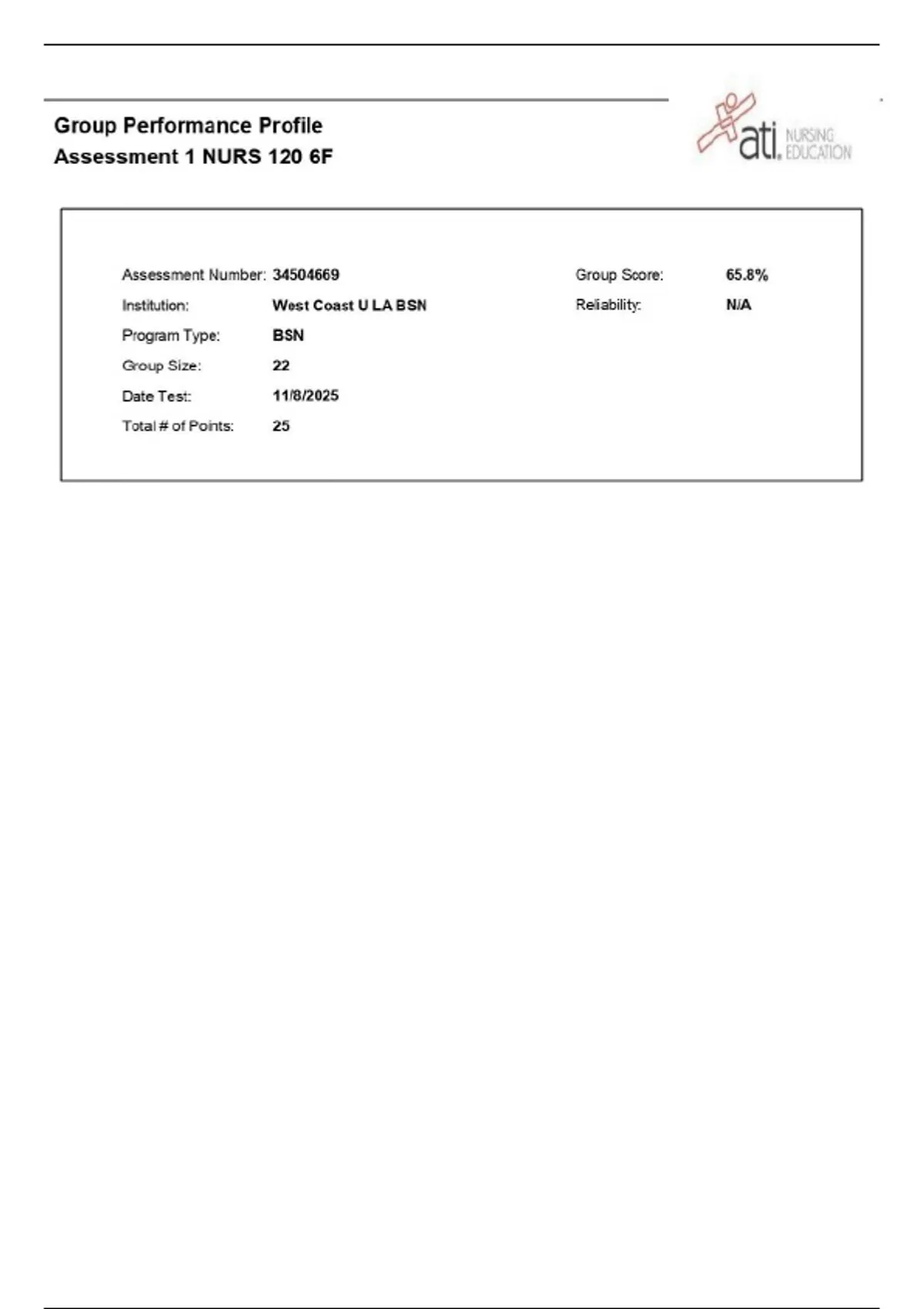 Group Performance Profile NURS 120 Quiz Assessment 4 6F SJ Fall 2025/26 Group Performance Profile NURS 120 Assessment 3 Fall 2025/26 6F-SJ Group Performance Profile N120 Assessment 2 Fall 2025/26 Sect 6F- SJ Group Performance Profile NURS 120 Assessment 1 fall 2025/26 | 6F SJ