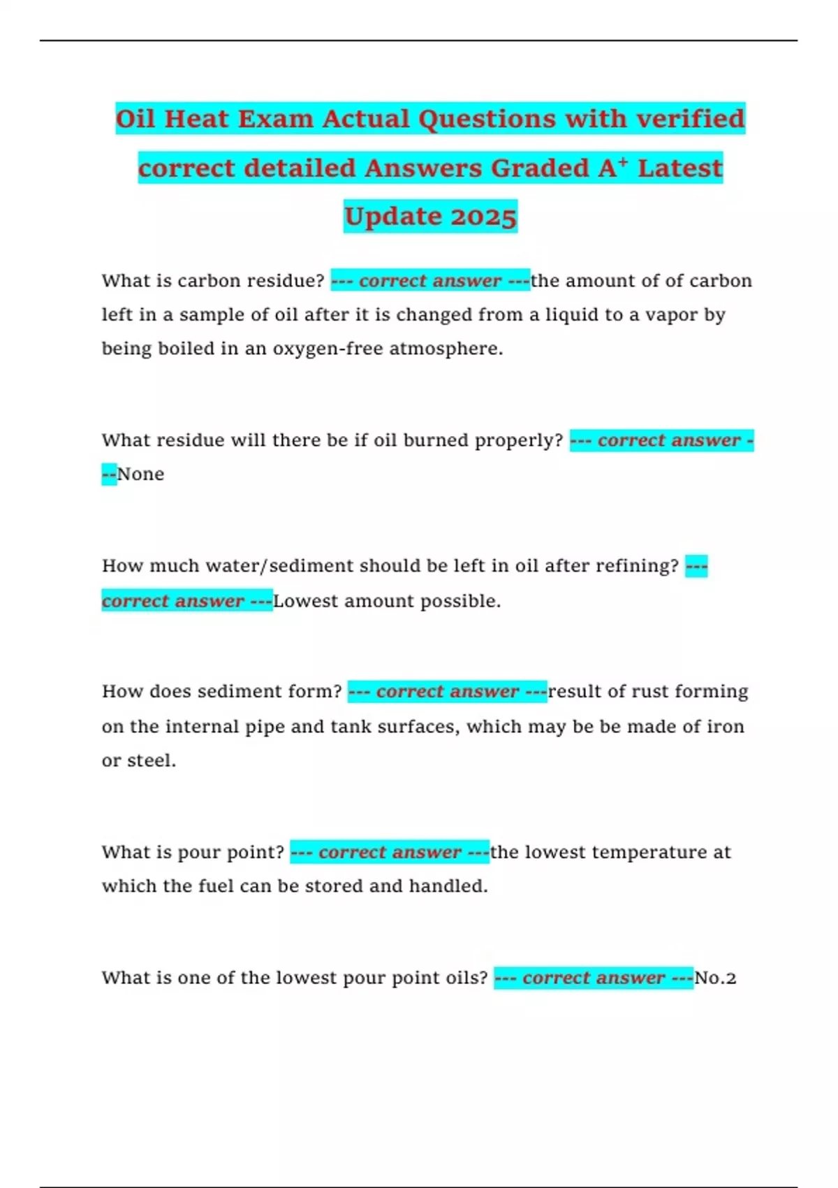 Oil Heat Exams Questions and Answers
