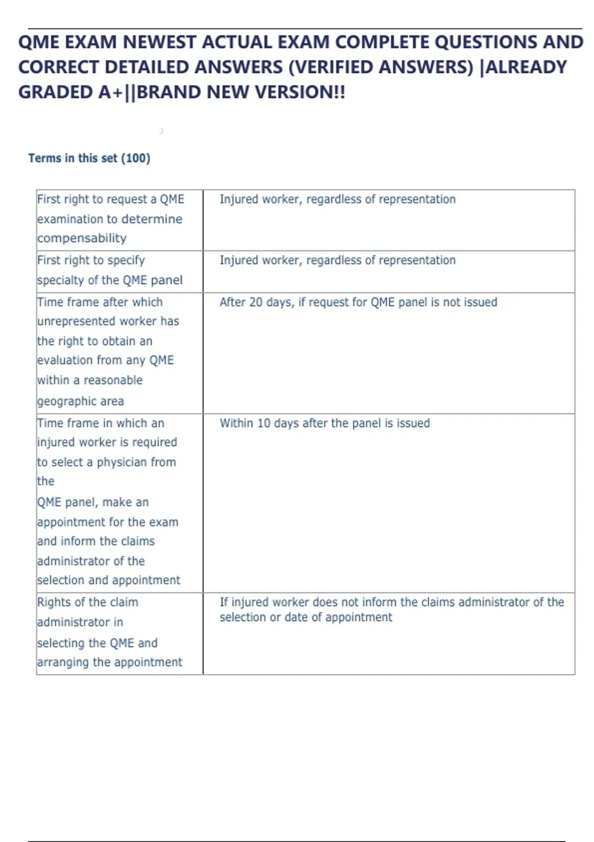 QME EXAM NEWEST ACTUAL EXAM COMPLETE 400 QUESTIONS AND CORRECT DETAILED ANSWERS (VERIFIED ANSWERS) |ALREADY GRADED A+||BRAND NEW VERSION!!