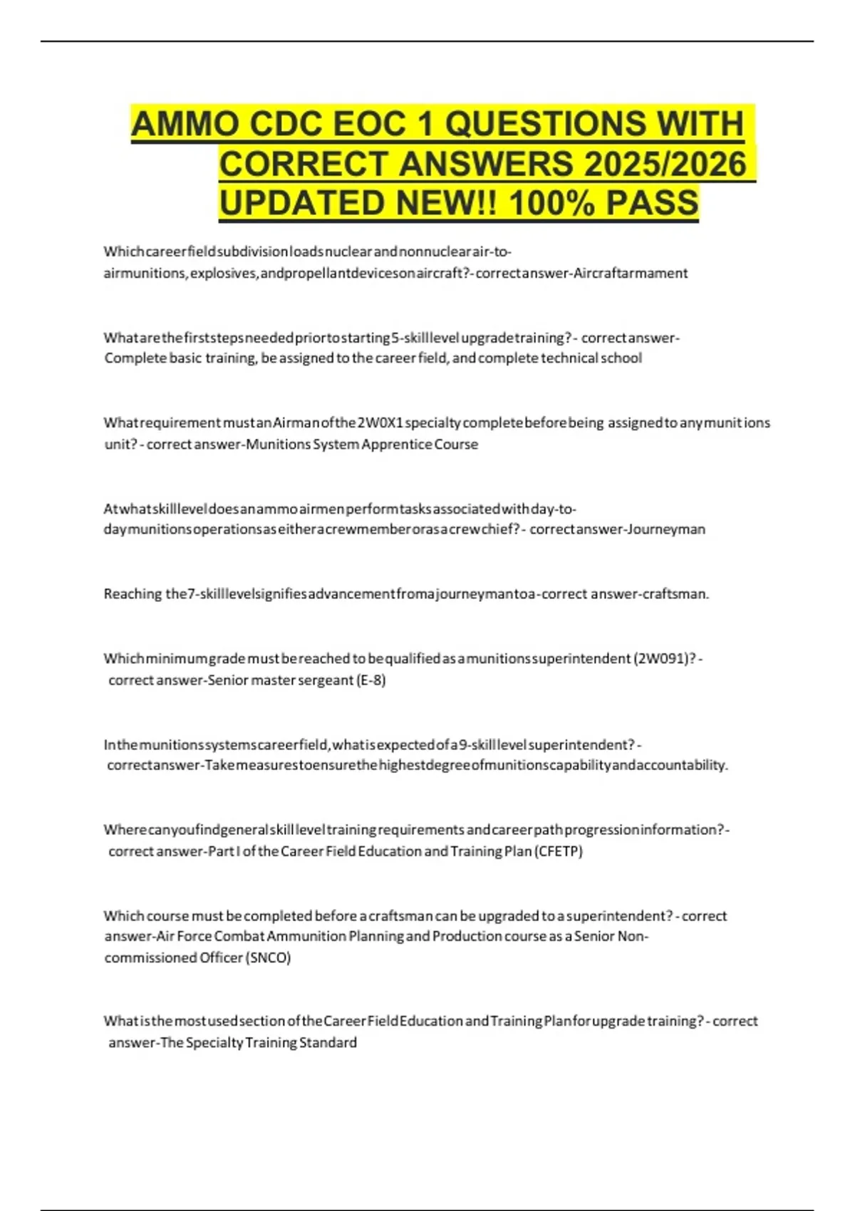 Exam (elaborations) AMMO CDCS SET A, VOLUME 2 QUESTIONS WITH CORRECT ANSWERS 2025 2 Exam (elaborations) AMMO CDC S SET A VOLUME 3 QUESTIONS WITH CORRECT ANSWERS 2025 3 Exam (elaborations) AMMO CDC’S SELF TEST QUESTIONS WITH CORRECT ANSWERS 2025 4 Exam (elaborations) AMMO CDC: GUIDANCE SYSTEMS, MISSILES QUESTIONS WITH CORRECT ANSWERS 2025/2026 WI