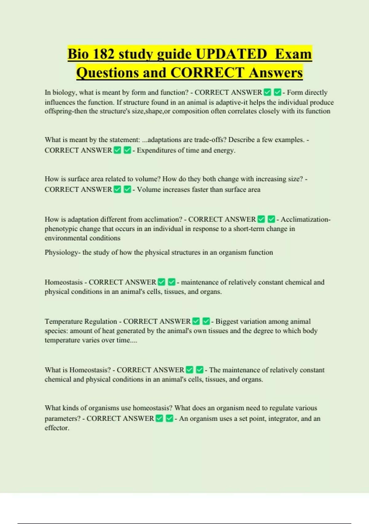 GCU Bio 182 Bundled Questions and CORRECT Answers