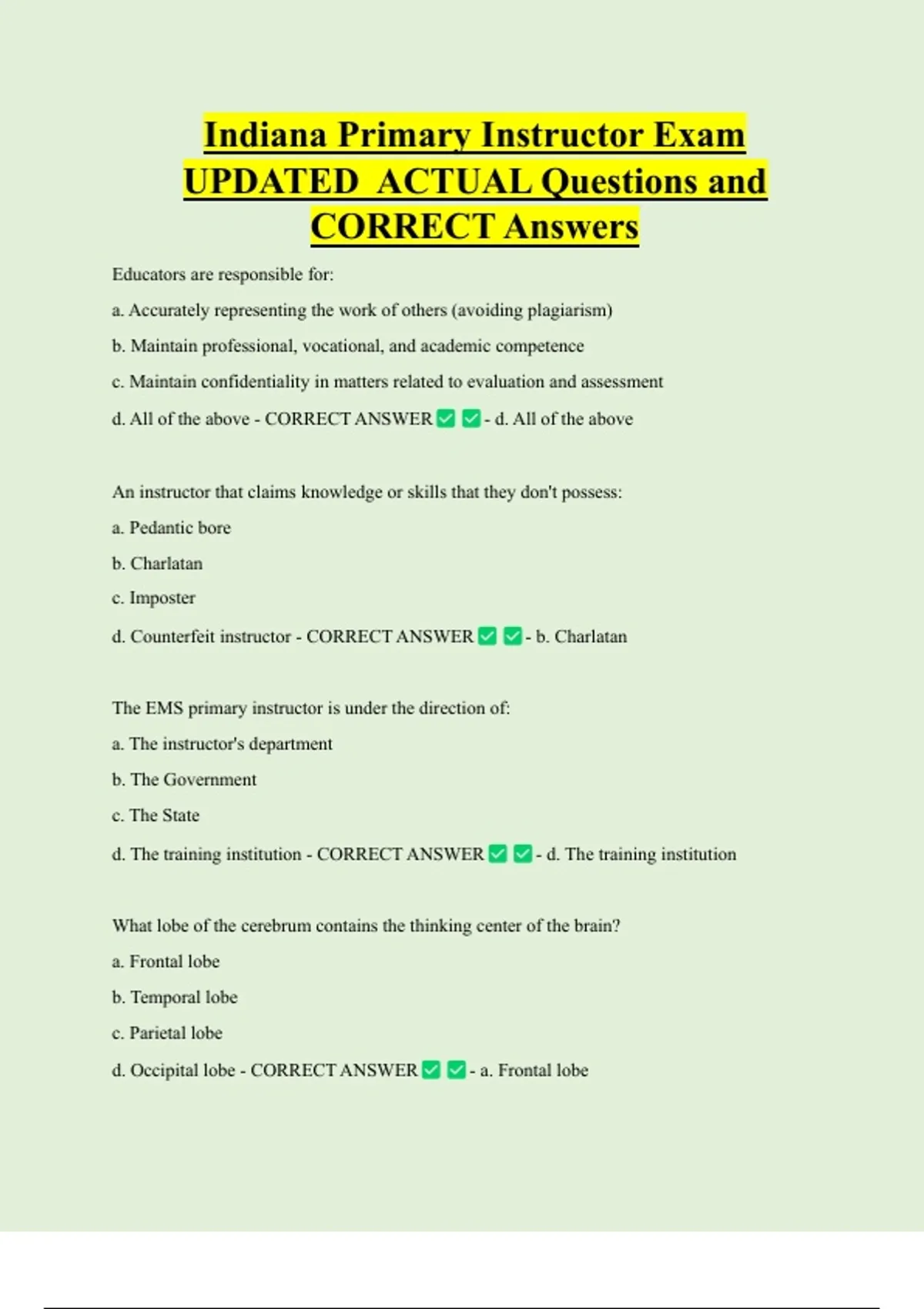 Indiana Primary Instructor Bundled Questions and CORRECT Answers