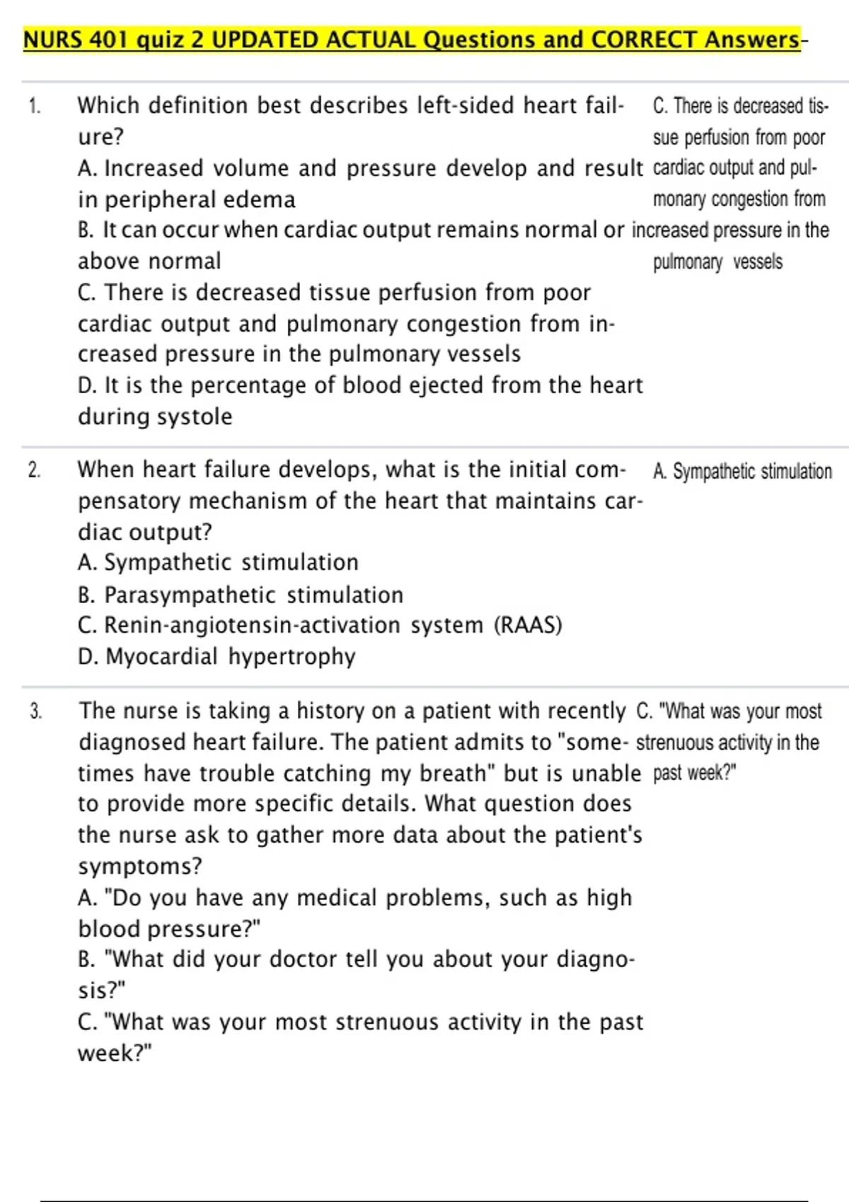 NUR 401 Bundled Questions and CORRECT Answers