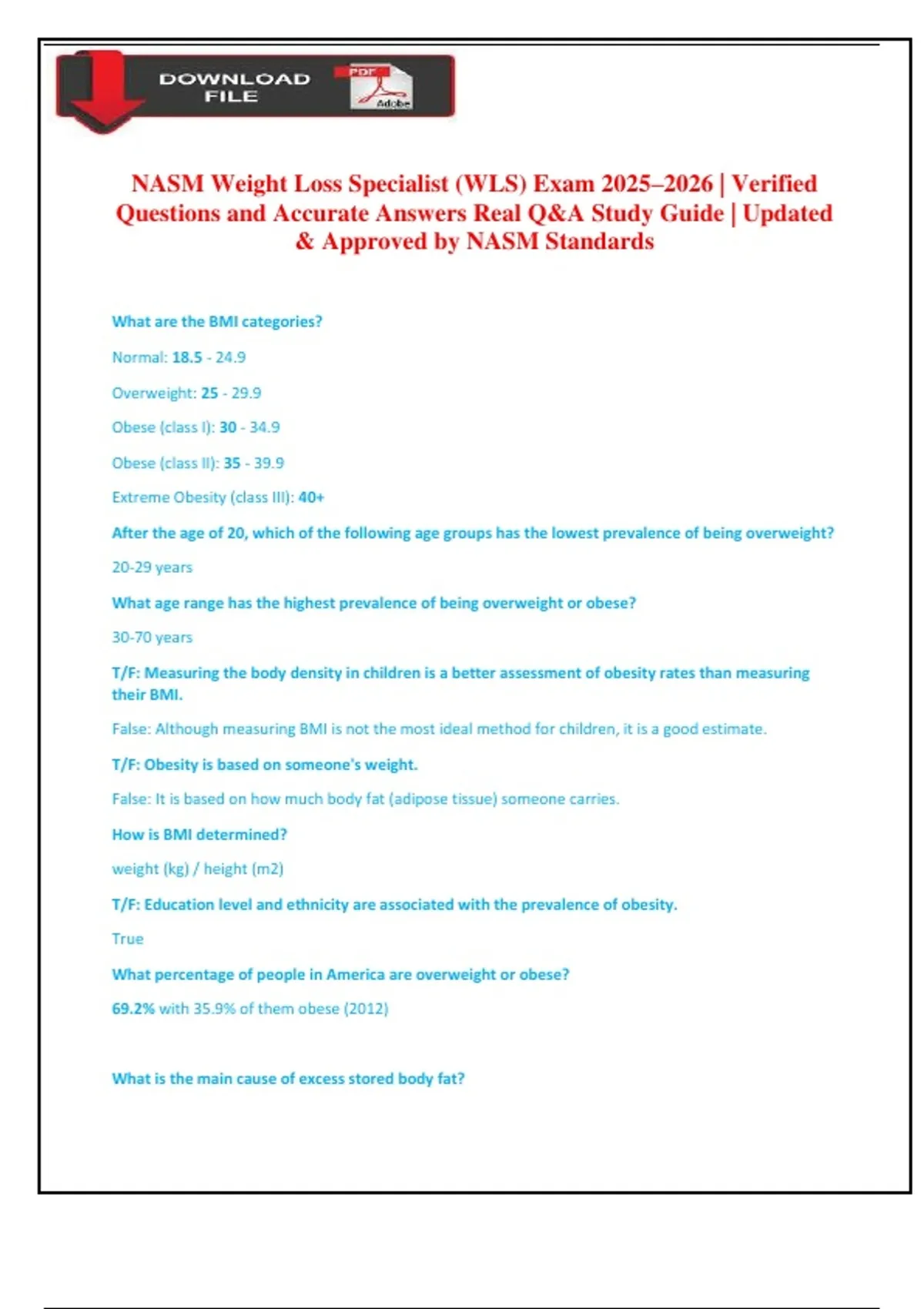 NASM Certification Exam Bundle 2025–2026 | Includes: Weight Loss Specialist (WLS) + Certified Personal Trainer (CPT) + Nutrition Coach (CNC) | Verified Questions, Accurate Answers & Real Exam Q&A Study Guides | Updated & Approved by NASM Standards